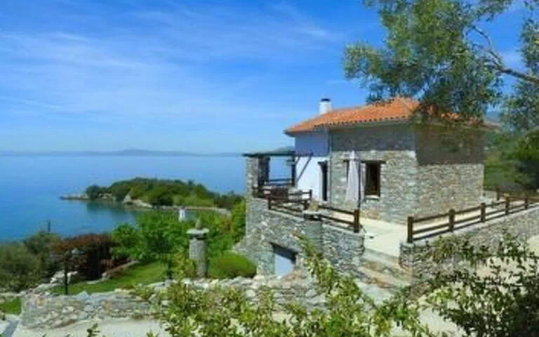 Lefokastro lies approx. 30 km south of Volos between Afisos and Kalamos, hardly touched by mass tourism. There are only a few small accommodations for holidaymakers seeking tranquillity and the authentic.Anthyllion is located outside the settlement of Lefokastro, in a large and very well-kept garden. It is built on a slope above the sandy beach of Agia Efimia near Lefokastro, so that you have a beautiful sea view from all the flats.Large, well-kept garden with barbecue area and garden furniture.Parking: Parking in the green area of the complex.Beach: Sandy beach Agia Efthimia near Lefokastro approx. 50-100 metres. The nearest beach is in Lefokastro approx. 500 m or in Afissos approx. 1.8 km Villa facilities- Private car park- garden- Barbecue area- Deckchairs + parasols- Panoramic sea view- Wi-Fi InternetAnthylion is a new building and has 5 separate villas of equal value (approx. 45 square metres each). Each flat is tastefully and modernly furnished and has a large balcony with garden furniture and unrestricted sea views. In the garden there is a barbecue area and garden furniture, which are available to guests.5 flats - each for 2-3 persons (two of them are also suitable for 2 adults + 2 children): Each flat is very tastefully and modernly furnished. The whole flat practically consists of one room. The sleeping area with a double bed is separated from the rest of the flat either by a counter or by curtains. The living room has a large sofa bed, fireplace, TV, heating, very well-equipped kitchenette, dining table with 4 chairs, shower/WC, terrace (20 square metres) with garden furniture and sea view. Villa Margarites is rented out here (see photo of the detached villa at the top) Flat equipment- Air conditioning- Large balconies with panoramic sea views- Garden furniture- 2 X TV FLAT-SAT- Internet connection- Hairdryer- Welcome basket- Wi-Fi Internet- Shower/WC- Very well equipped kitchen with dining table- Sleeping area with double bed- Living area with fireplace and seating set- Cleaning/bed linen and towel change every 3rd day.Rural, quiet, ideal for holidays away from mass tourismIt is situated on a slope and you have a very beautiful panoramic sea view from everywhere.There are two tavernas in Lefokastro and shopping facilities in Afisos or Argalasti. 0726K91000438601