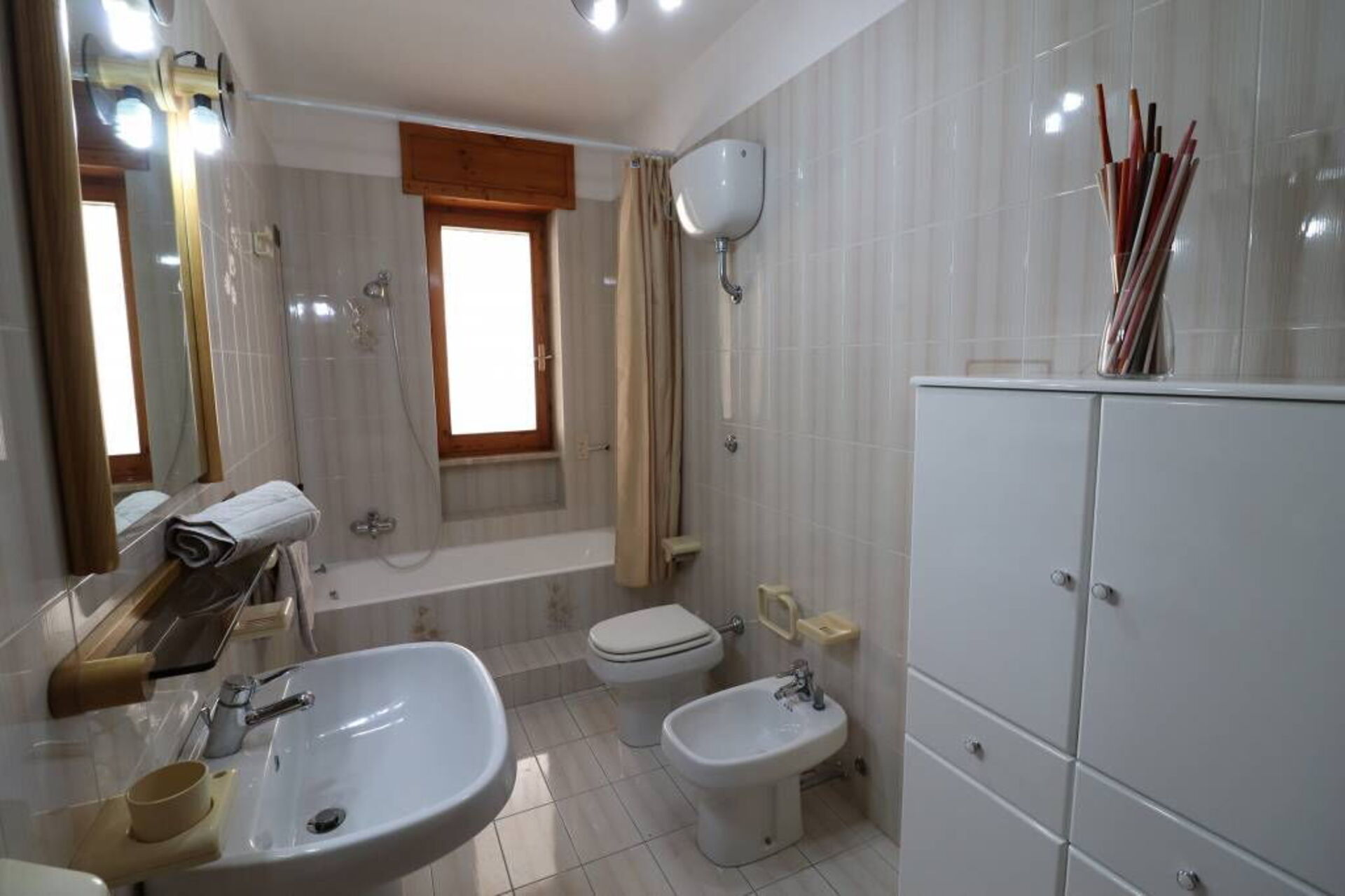 Badkamer: wastafel, toilet , bidet, bad, haardroger.