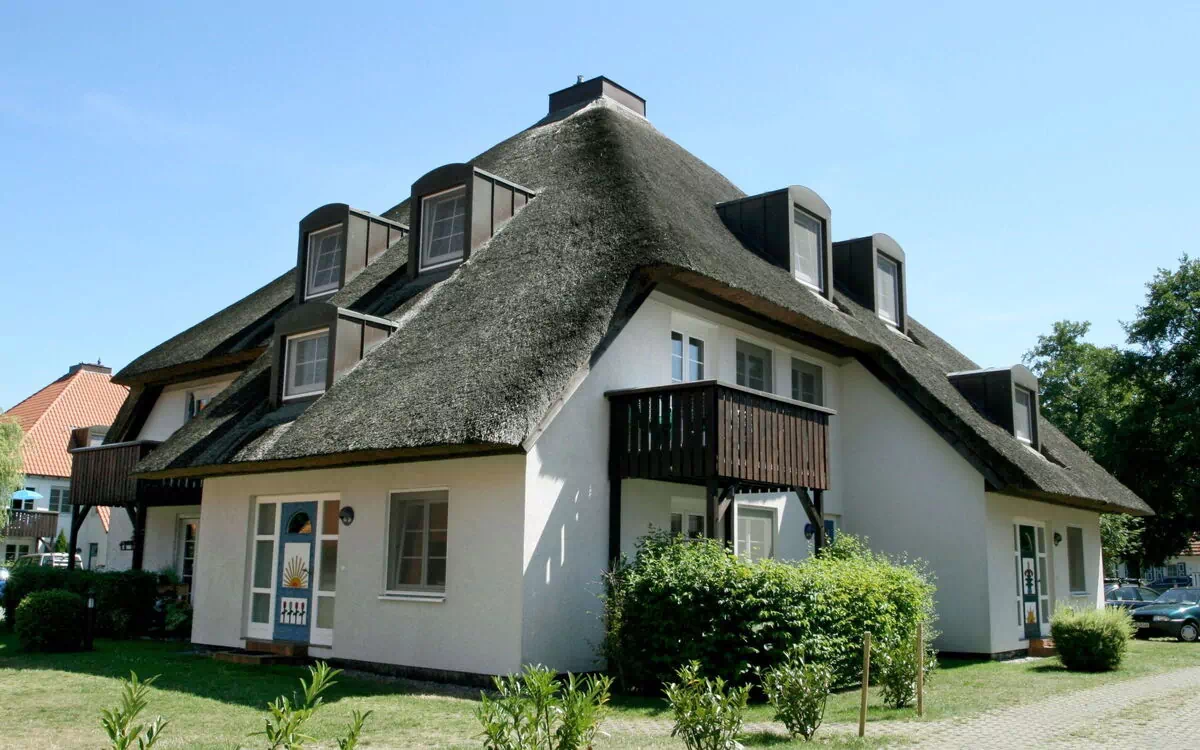 Moderne vakantiecomplex "Kormoran". Aan de rand van de plaats, 1.5 km van het centrum van Prerow, direct aan de bosrand, 1 km van zee, 1 km van het strand. Voor medegebruik: tuin. Barbecue, kinderspeelplaats. In het complex: receptie, centrale verwarming. Parkeerplaats bij het huis. Winkel 1 km, levensmiddelenwinkel 1 km, restaurant 1 km, bushalte 1 km, zandstrand "Nordstrand" 1 km. Let op: De afgebeelde foto is slechts een voorbeeld. De woningen kunnen onderling van inrichting verschillen. Strand van de Noordzee 1 km. Het vakantiecomplex is aan de rand van het bos gelegen en bestaat uit verscheidene appartementenhuizen (gedeeltelijk met rieten daken) met elk 8 appartementen, tot elk appartement behoort een aparte fiets-bergruimte op de begane grond. Kinderstoel (van de voren bestellen) 3 euro/dag.