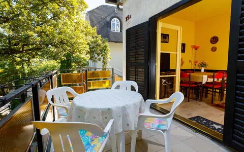 Halfvrijstaand huis 5-kamers 75 m2. Woonkamer met Sat-TV en internationale TV-zenders. Uitgang naar het balkon. 1 kamer met 2 bedden. Kleine keuken (4-pits kookplaat, oven, broodrooster, waterkoker, magnetron, diepvriezer). Uitgang naar het terras. Douche, aparte WC. Geen verwarmingsmogelijkheid. Bovenverdieping: (steile trap), 1 kamer met 2 bedden (180 cm, lengte 200 cm). Uitgang naar het balkon. 1 kamer met 1 2-pers bed (160 cm, lengte 200 cm). Douche/WC. Groot balkon 18 m2, balkon 7 m2, groot terras 28 m2. Terrasmeubelen. Parkeerplaats (omheind). MA19010182