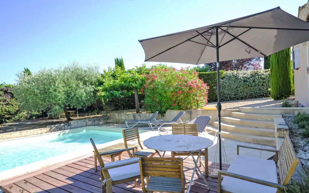 Gargas 4 km van Roussillon: Eengezinswoning "Les Iris", bouwjaar 1989, gerenoveerd in 2014. Buiten de plaats. Voor alleengebruik: terrein 1.300 m2 (omheind), openluchtzwembad beveiligd (10 x 4 m, 80 - 150 cm diepte, seizoensgebonden beschikbaarheid: 01.Mei. - 30.Sep.) met trap. Parkeerplaats op het terrein. Carport. Winkel 2 km, levensmiddelenwinkel 2 km, restaurant 2 km, bushalte "Avenue de Lançon" 3 km. Auto noodzakelijk. Afdak voor 1 auto. Garage alleen bestemd voor motoren en fietsen.