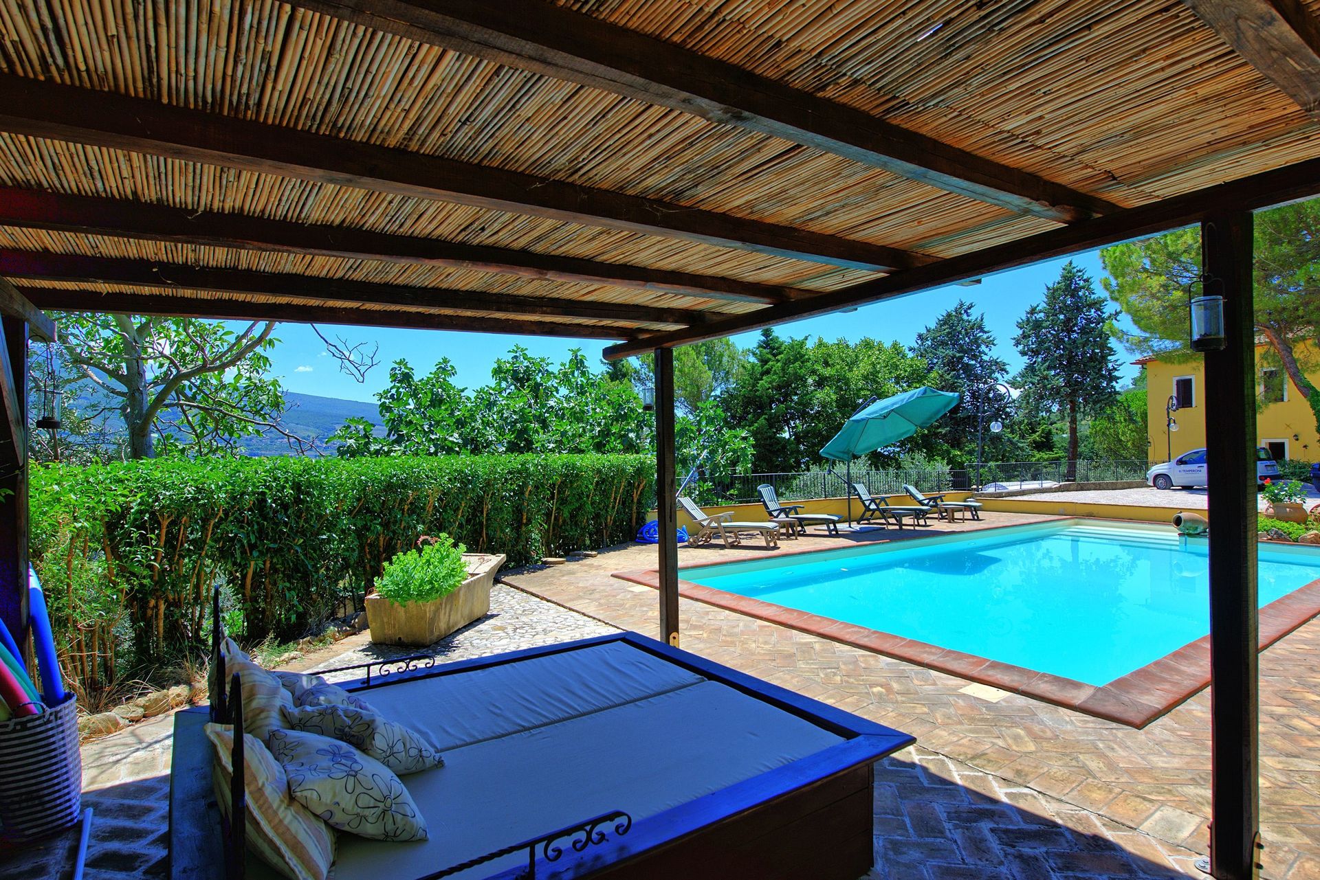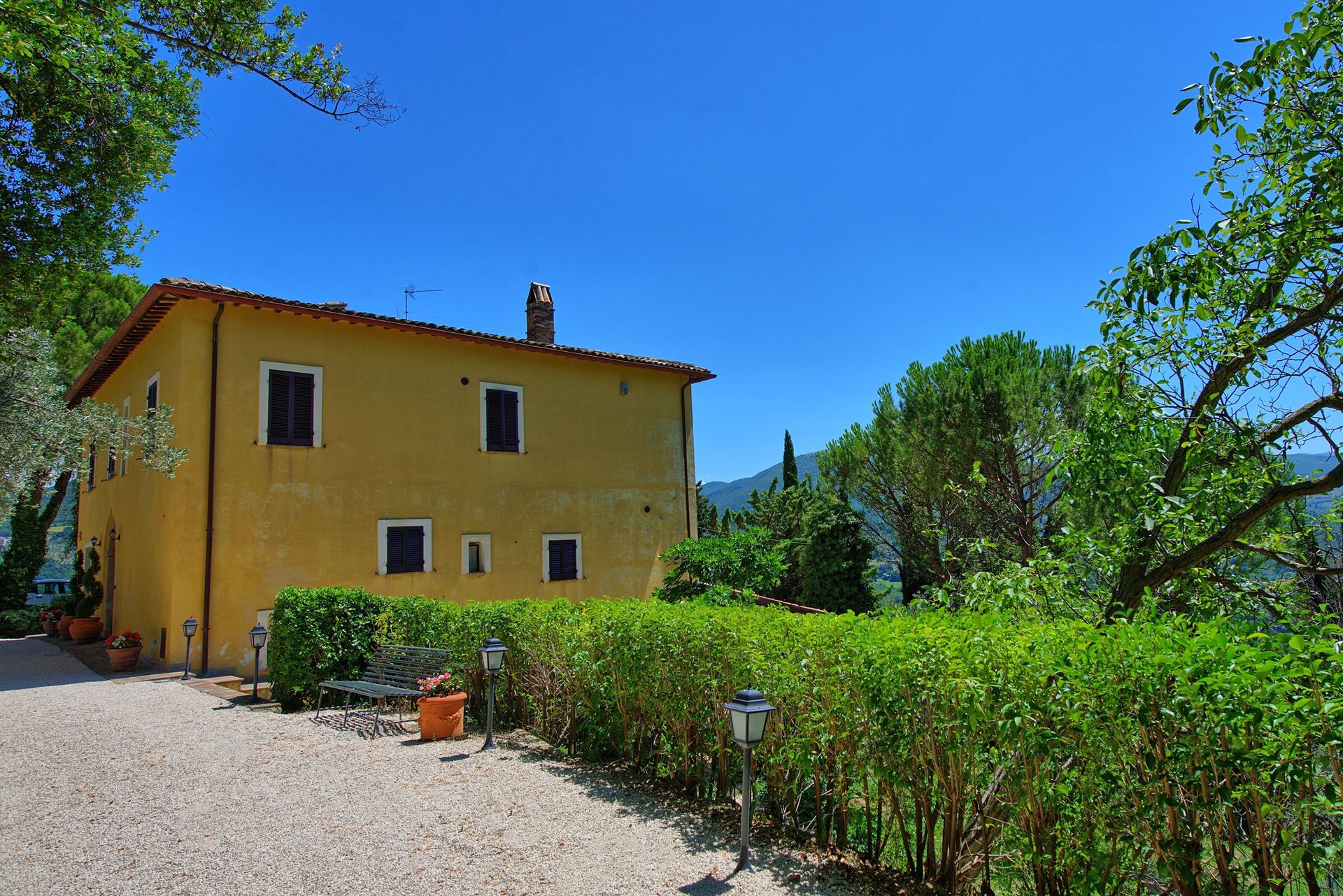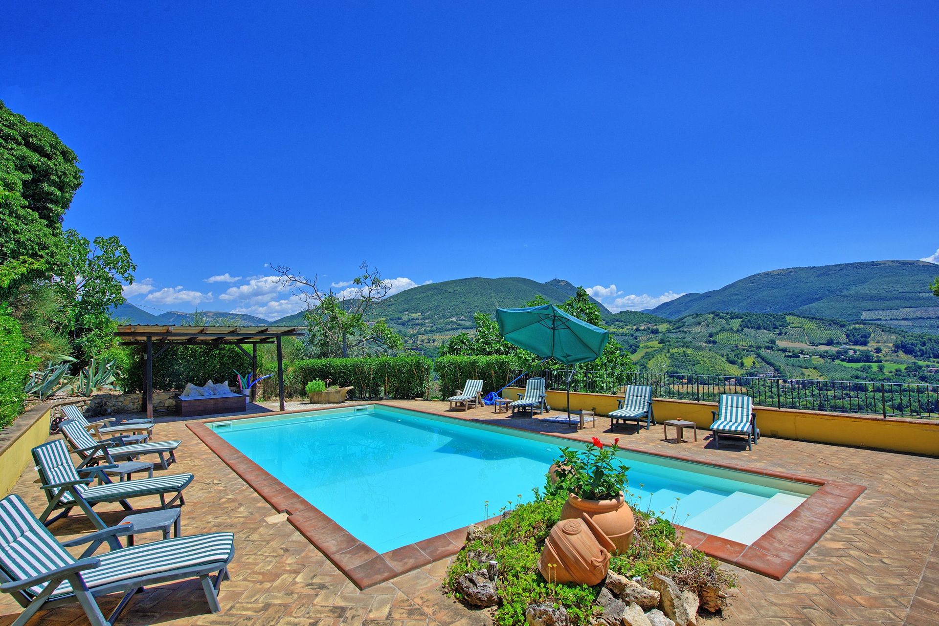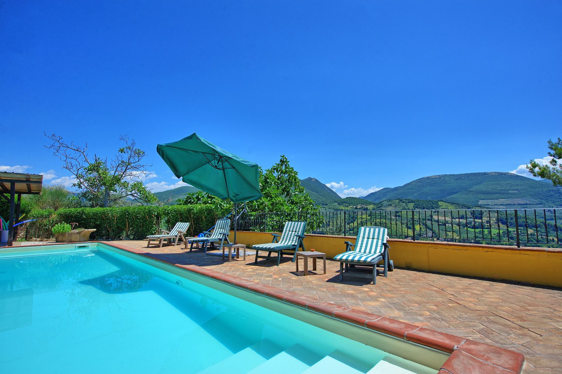 Afstanden: Foligno met allerlei winkels 6 km, Spello 8 km, het mooie stadje Assisi 26 km, Spoleto 34 km, Perugia 43 km, Todi 49 km, het meer van Trasimeno 63 km, Gubbio 74 km, Cortona 88 km, Siena 149 km, Rome 175 km, Florence 190 km, Pisa 289 km.