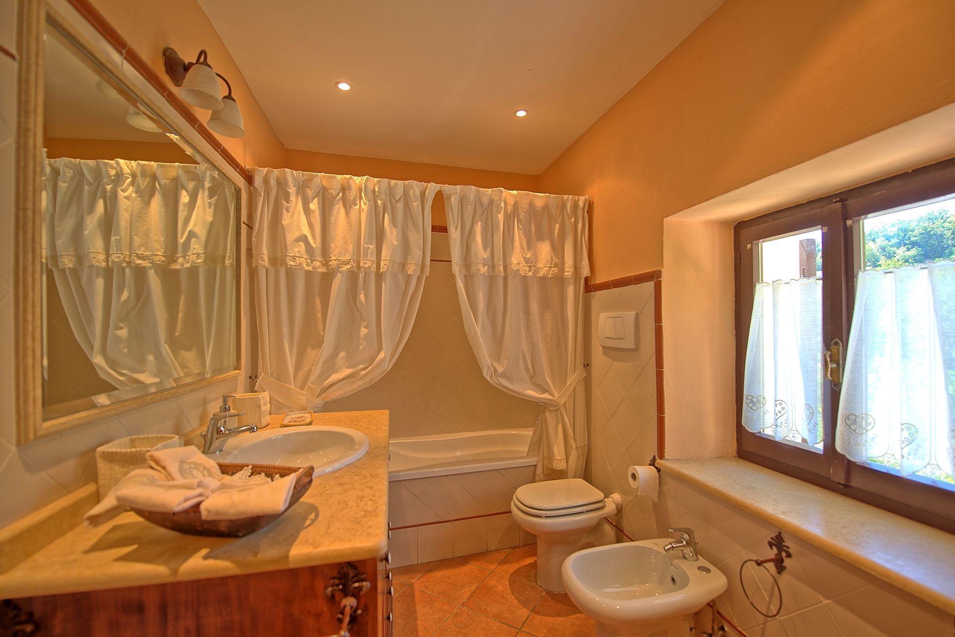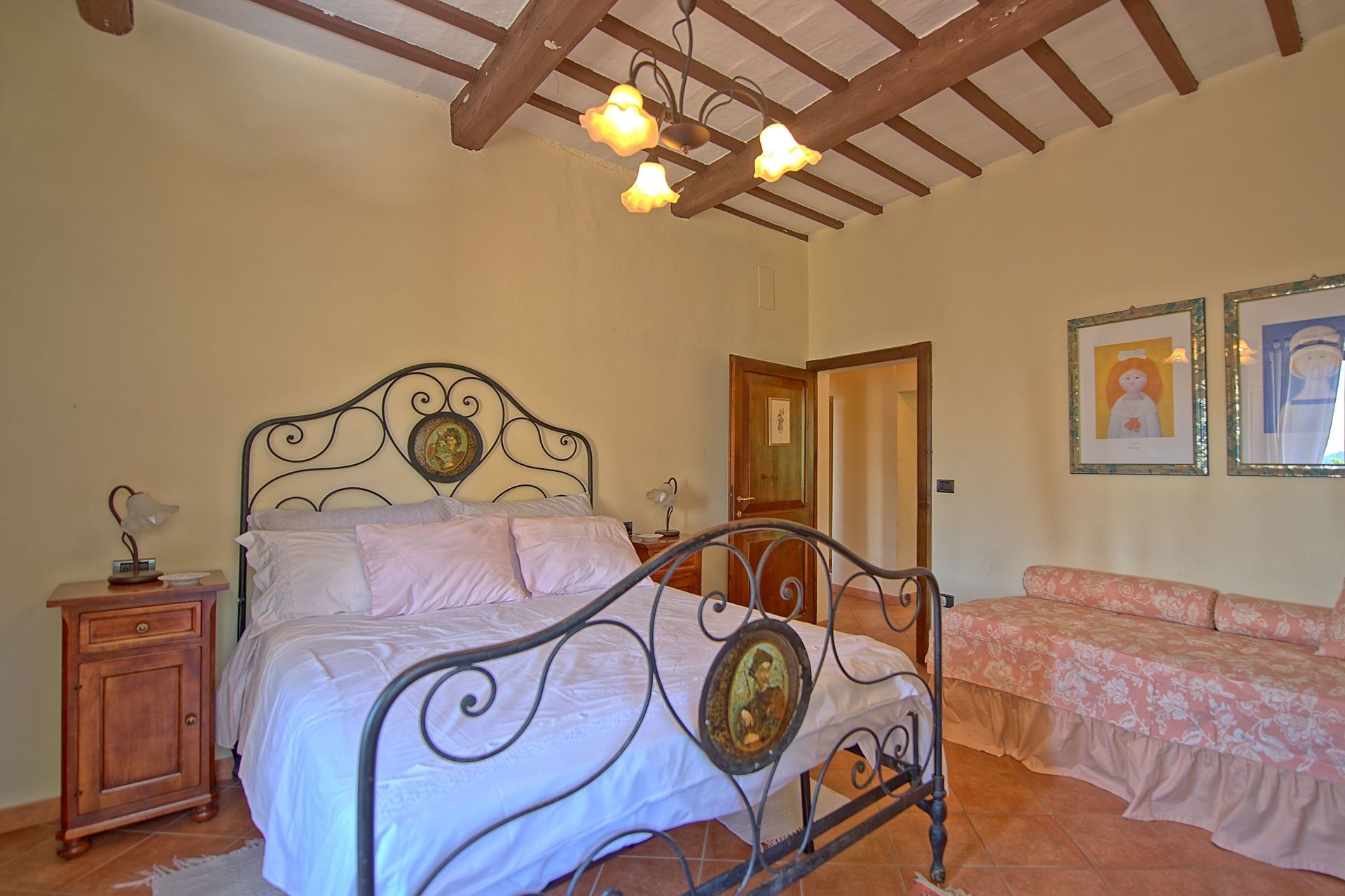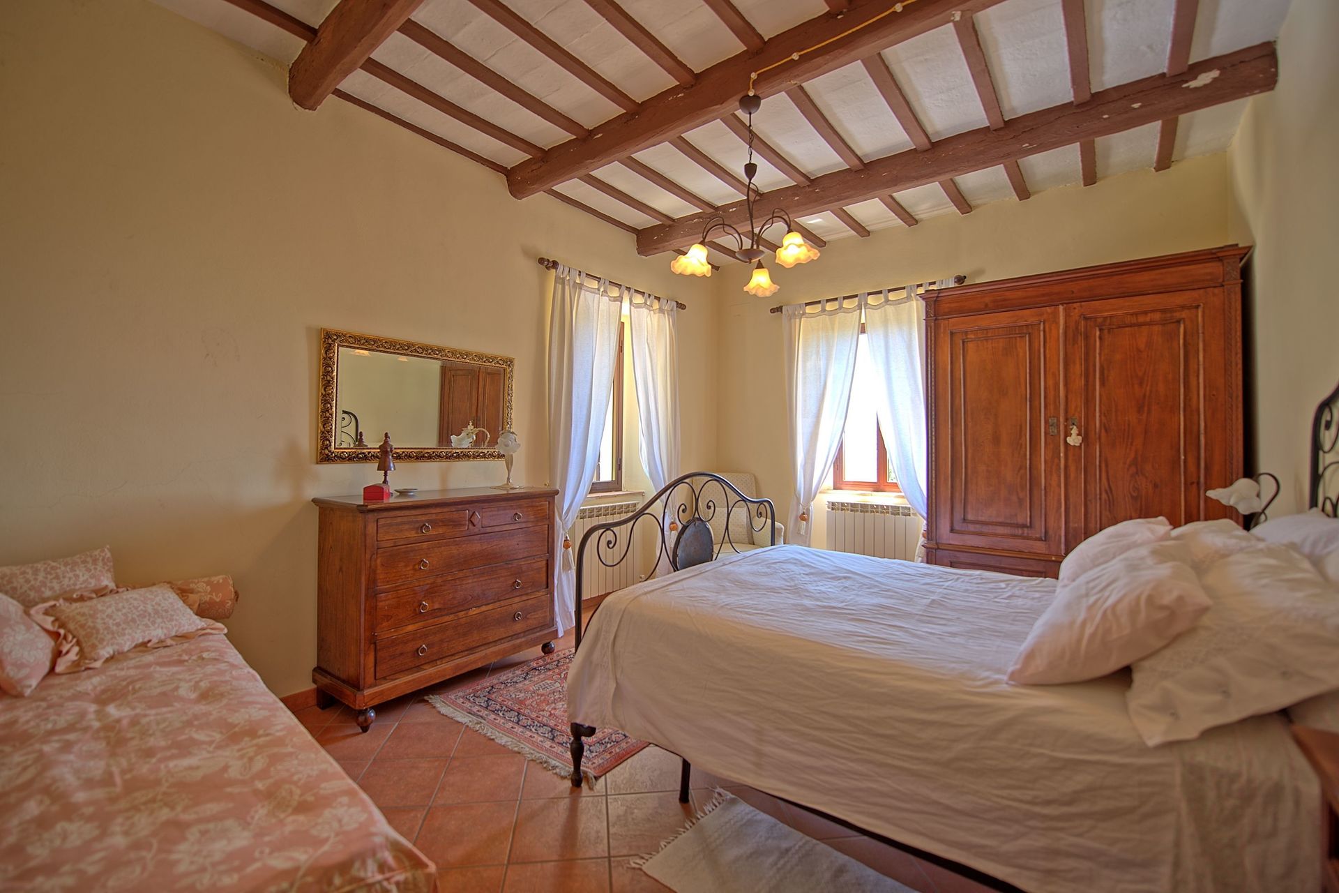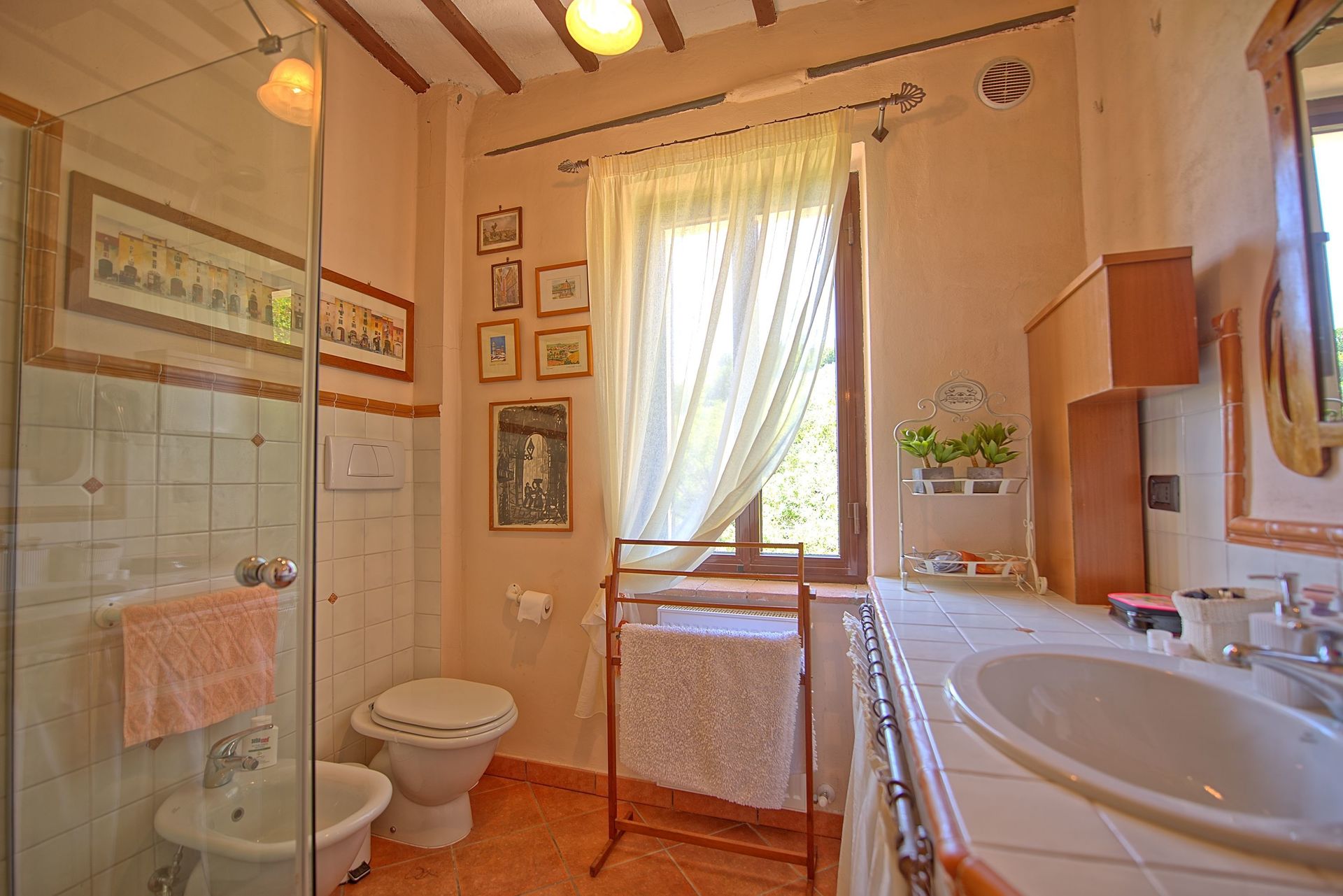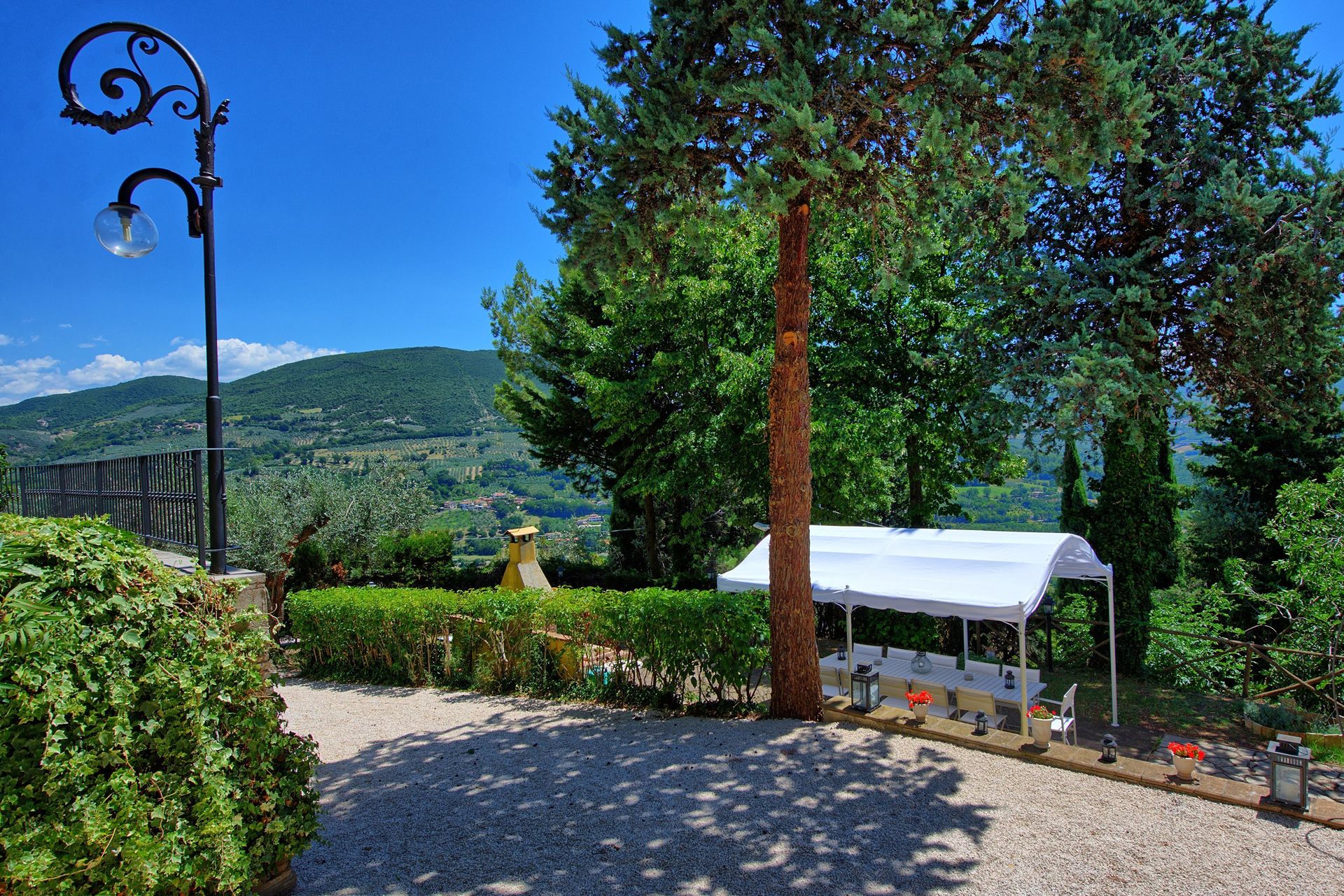Afstanden: Foligno met allerlei winkels 6 km, Spello 8 km, het mooie stadje Assisi 26 km, Spoleto 34 km, Perugia 43 km, Todi 49 km, het meer van Trasimeno 63 km, Gubbio 74 km, Cortona 88 km, Siena 149 km, Rome 175 km, Florence 190 km, Pisa 289 km.