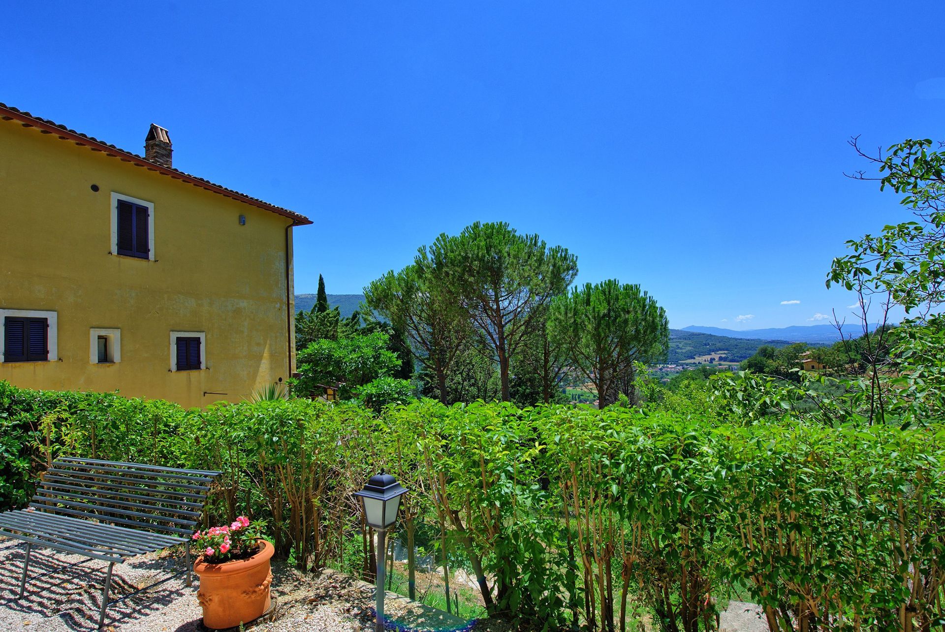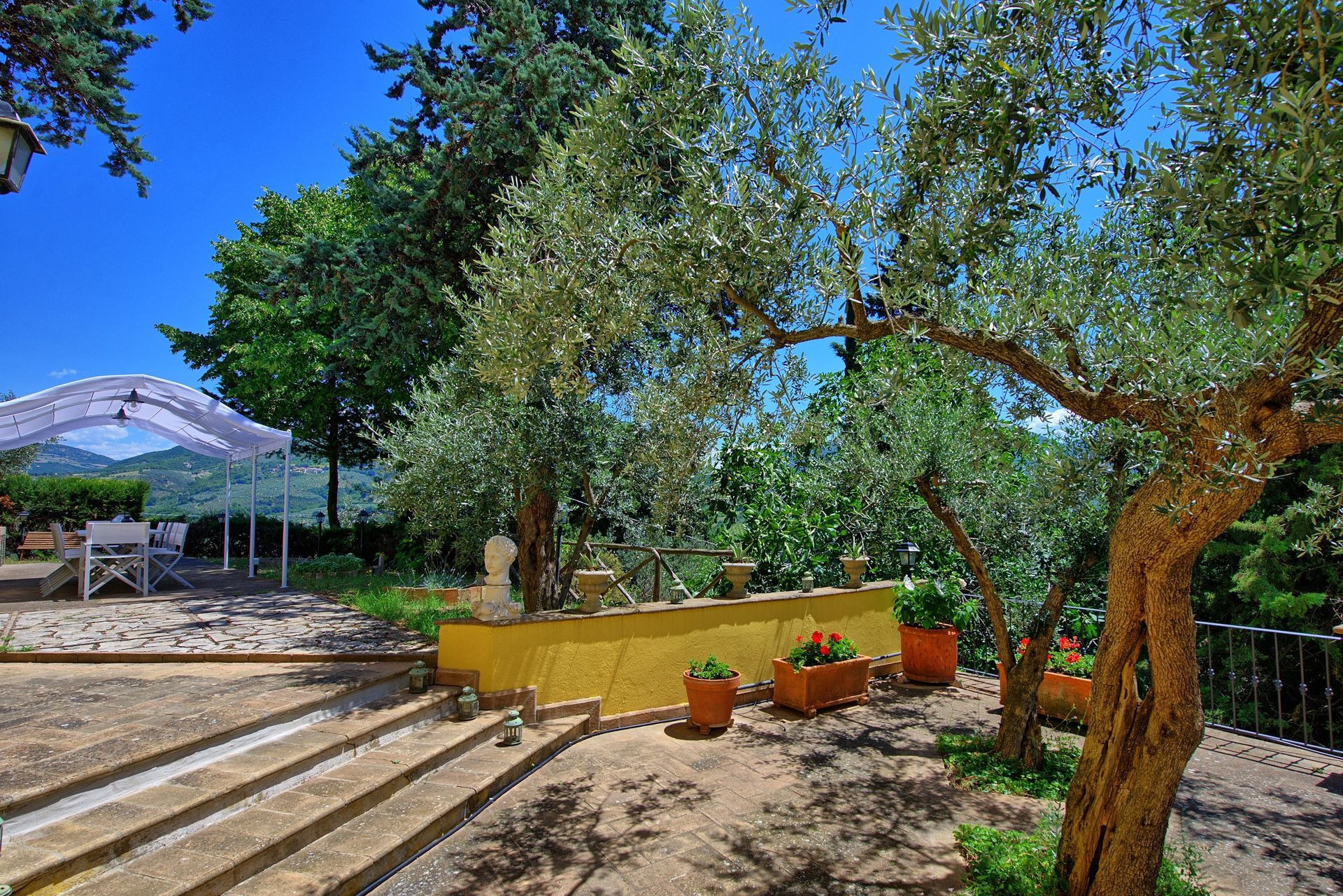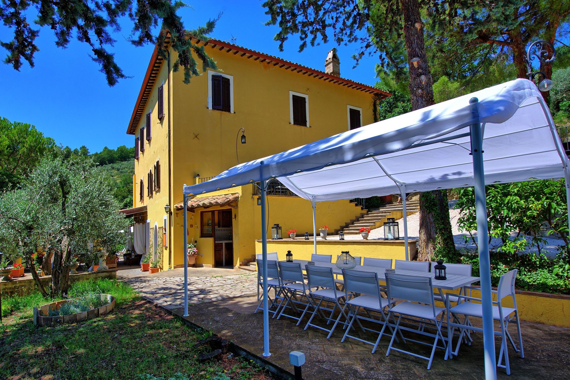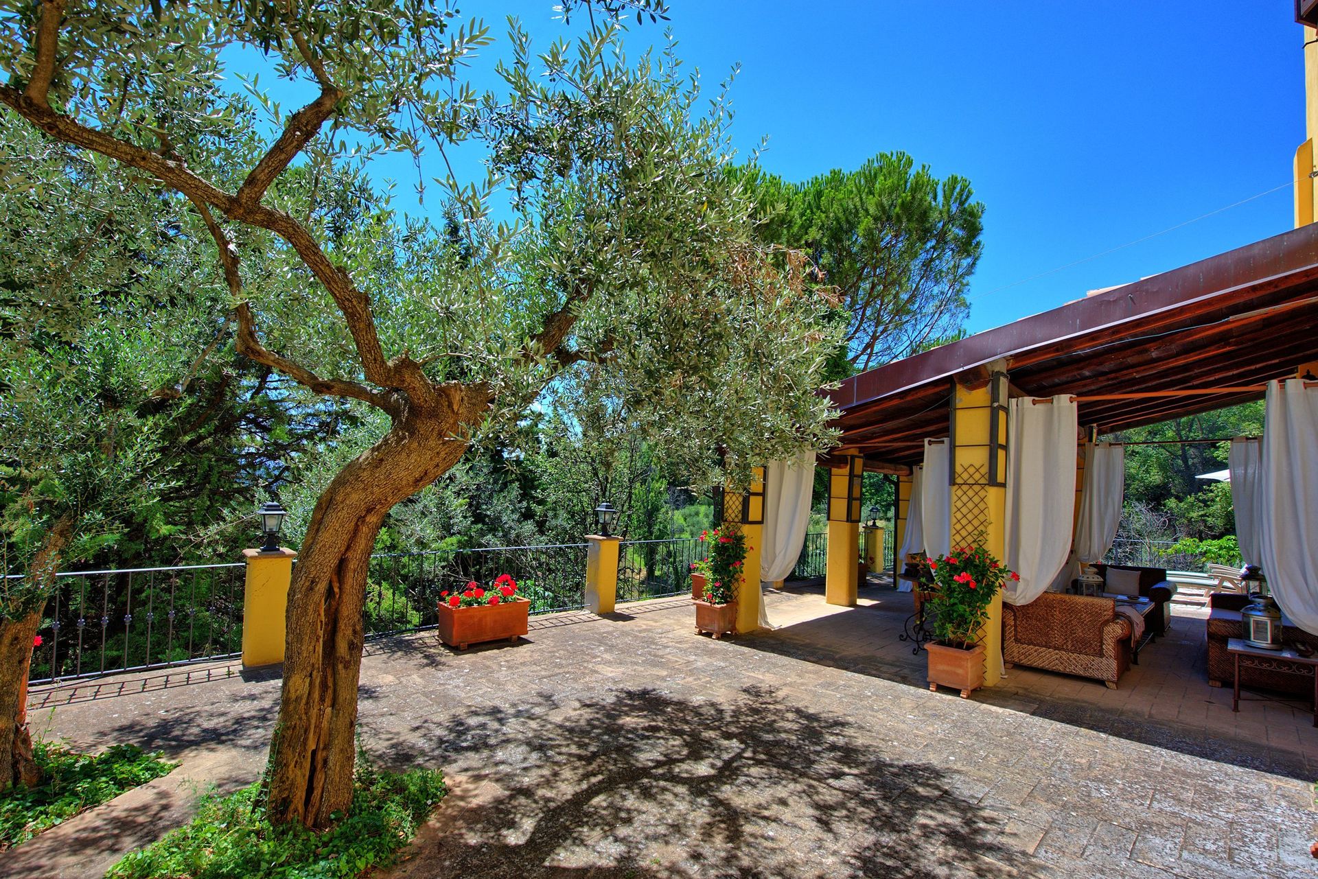 Antieke villa uit de 19de eeuw, zorgvuldig en smaakvol gerestaureerd en omgevormd tot een comfortabel en gezellig landhuis. Het huis is hoog en aangenaam gelegen, omgeven door olijfbomen, en biedt een mooi uitzicht over het omliggende landschap. Om het huis een grote tuin (deels in de schaduw) op natuurlijke terrassen, een mooi zwembad en leuke “hoekjes” waar men buiten kan eten. Het huis beschikt verder over een overdekt terras dat ingericht is als woonkamer in de open lucht voor de zomermaanden. De inrichting is comfortabel in landelijke stijl.