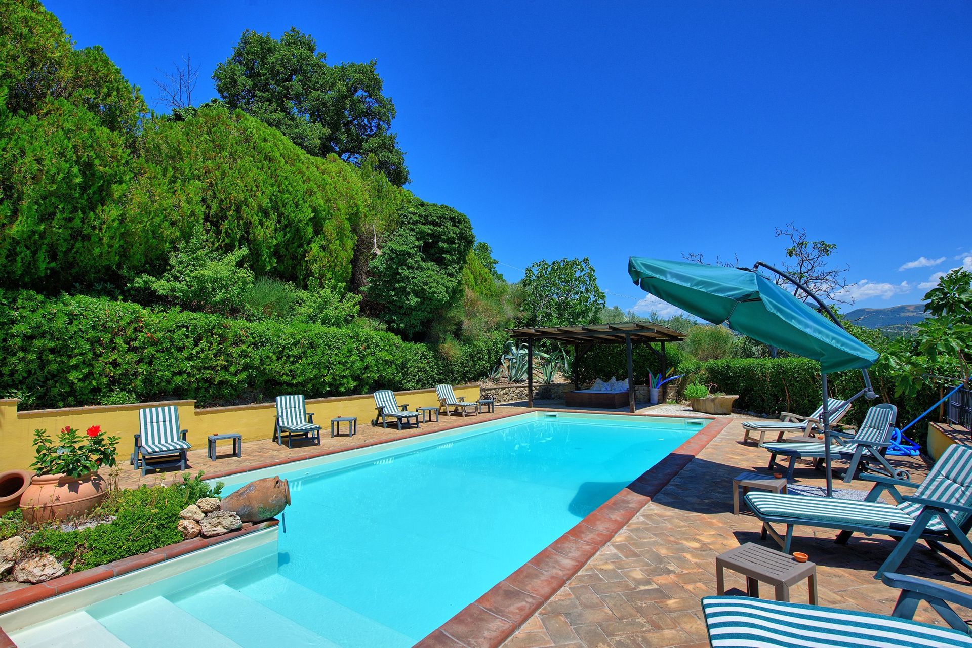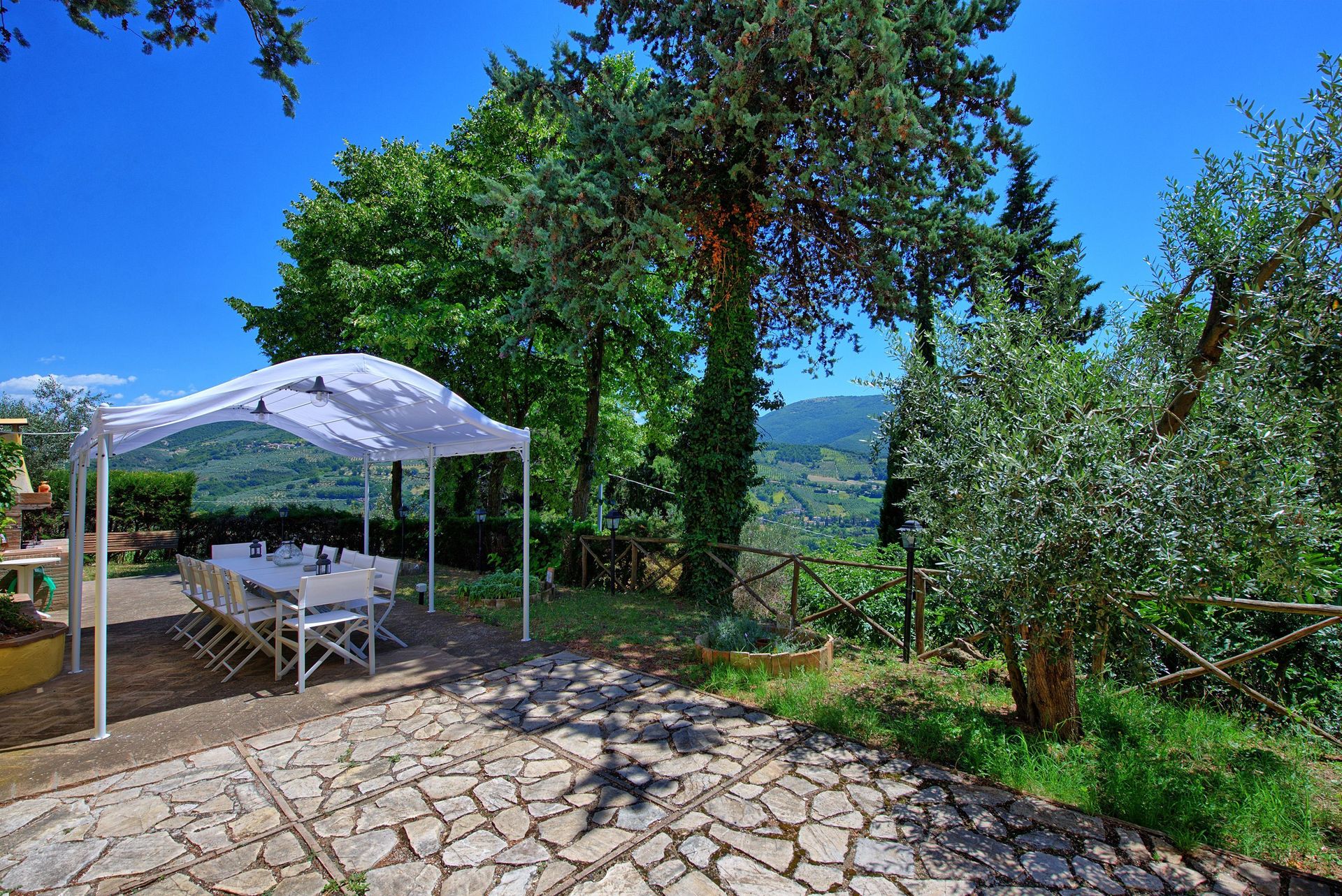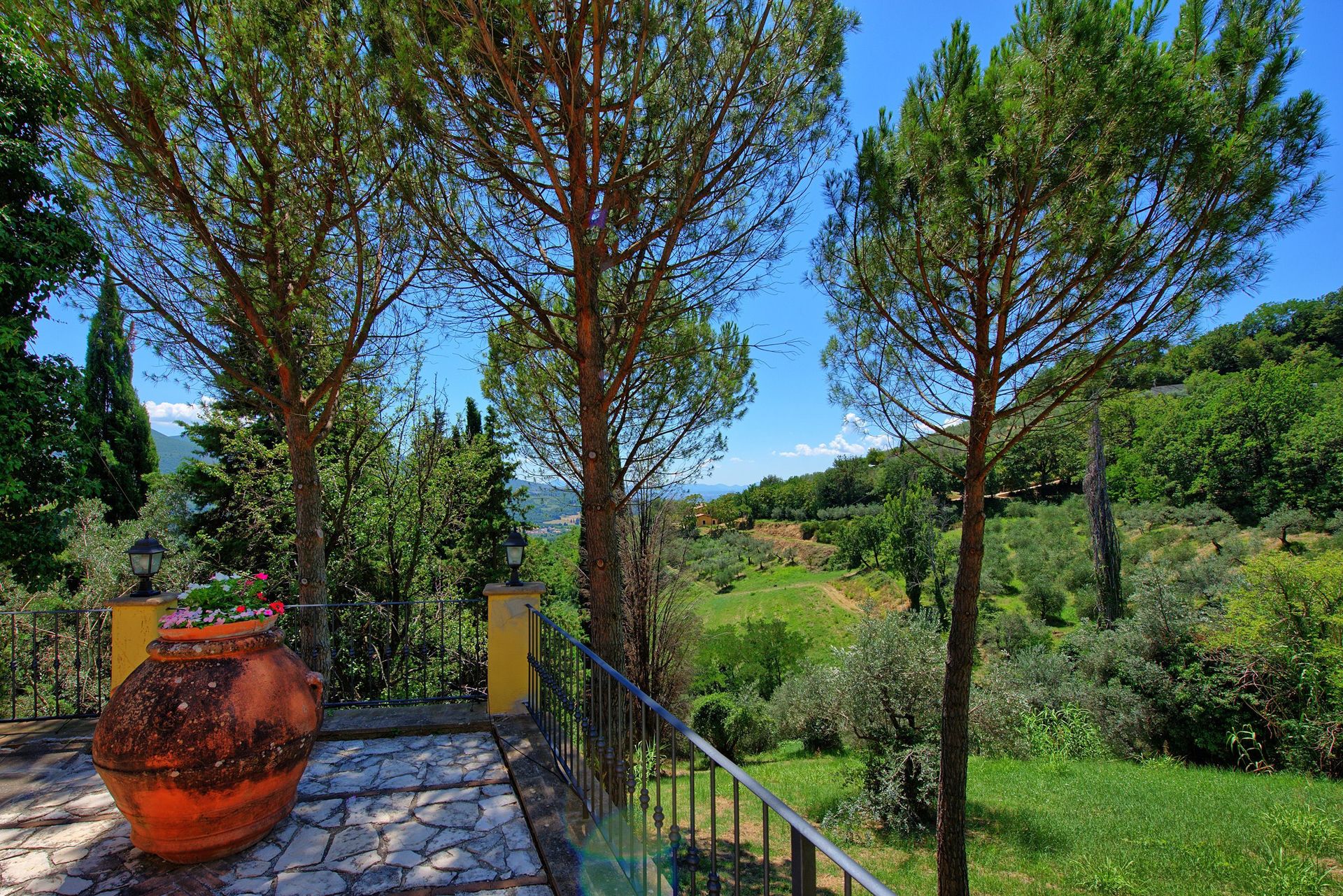 Antieke villa uit de 19de eeuw, zorgvuldig en smaakvol gerestaureerd en omgevormd tot een comfortabel en gezellig landhuis. Het huis is hoog en aangenaam gelegen, omgeven door olijfbomen, en biedt een mooi uitzicht over het omliggende landschap. Om het huis een grote tuin (deels in de schaduw) op natuurlijke terrassen, een mooi zwembad en leuke “hoekjes” waar men buiten kan eten. Het huis beschikt verder over een overdekt terras dat ingericht is als woonkamer in de open lucht voor de zomermaanden. De inrichting is comfortabel in landelijke stijl.