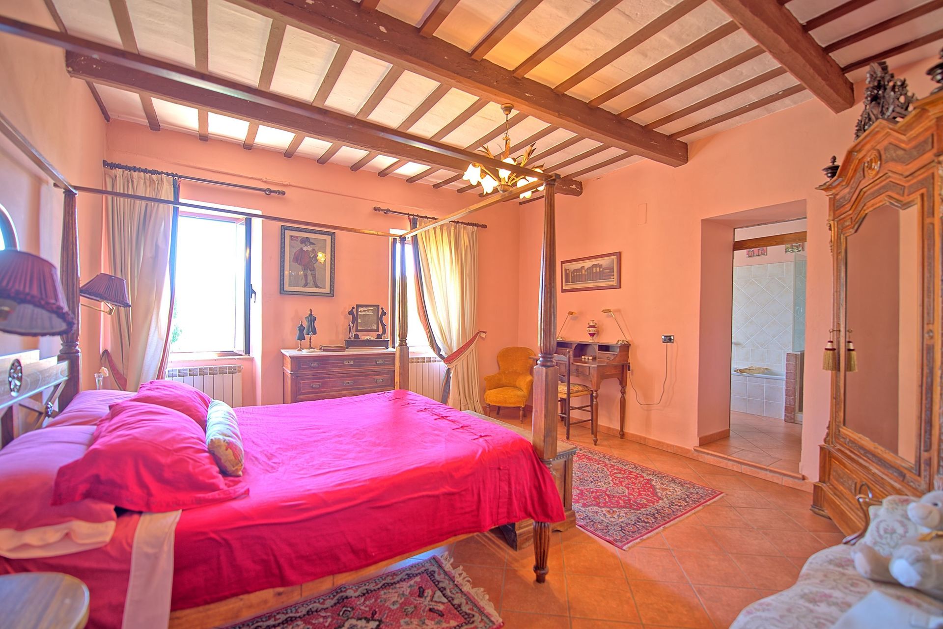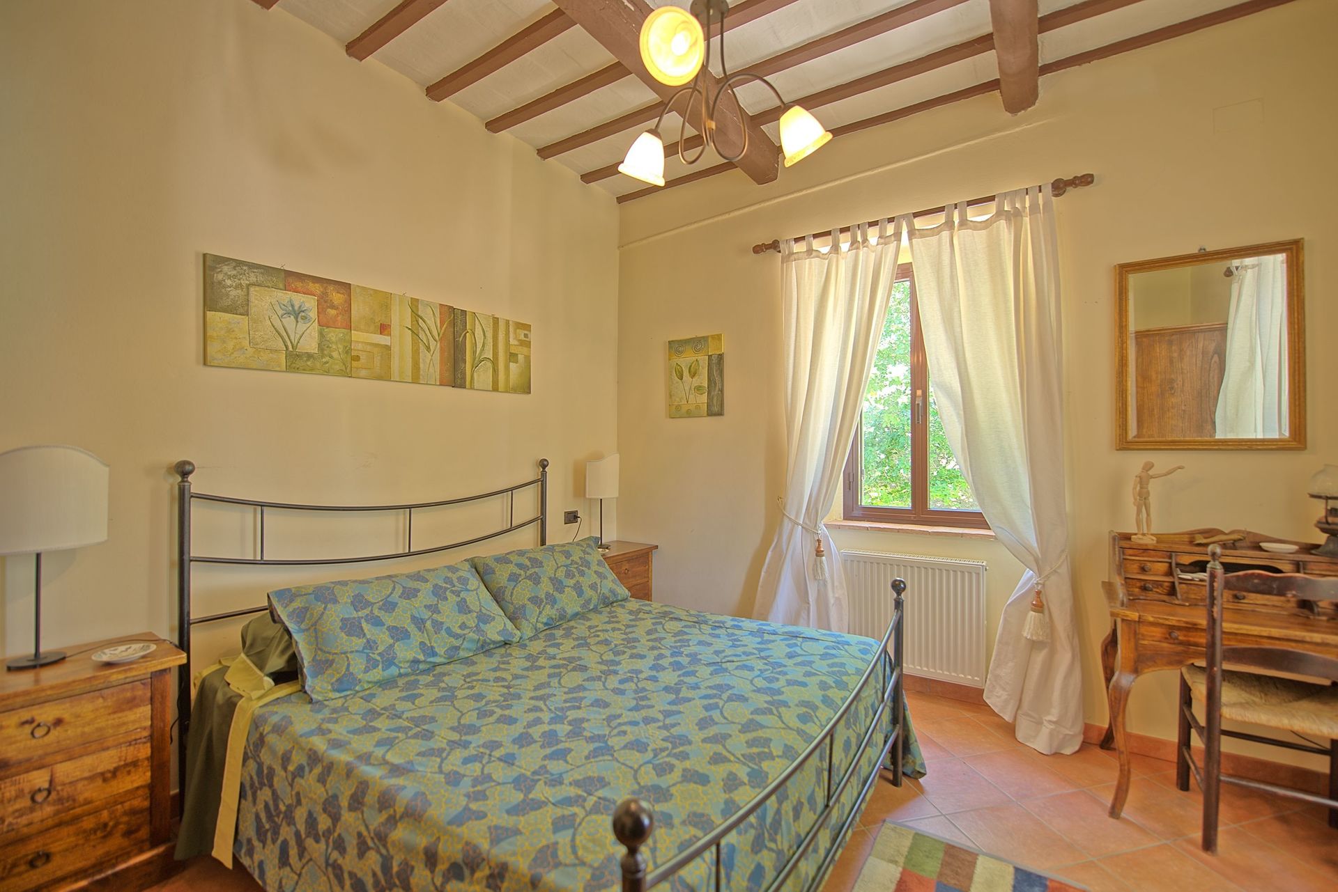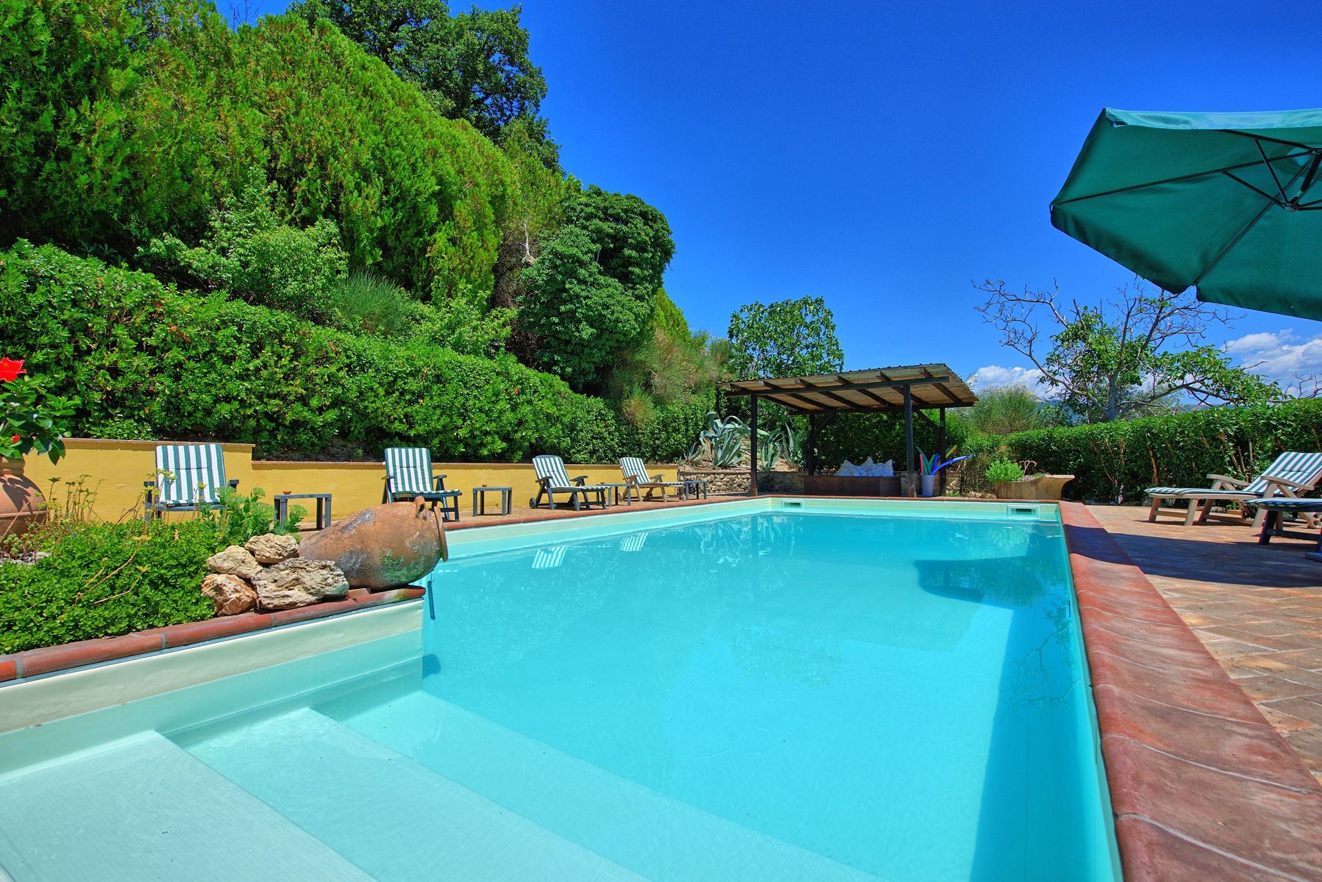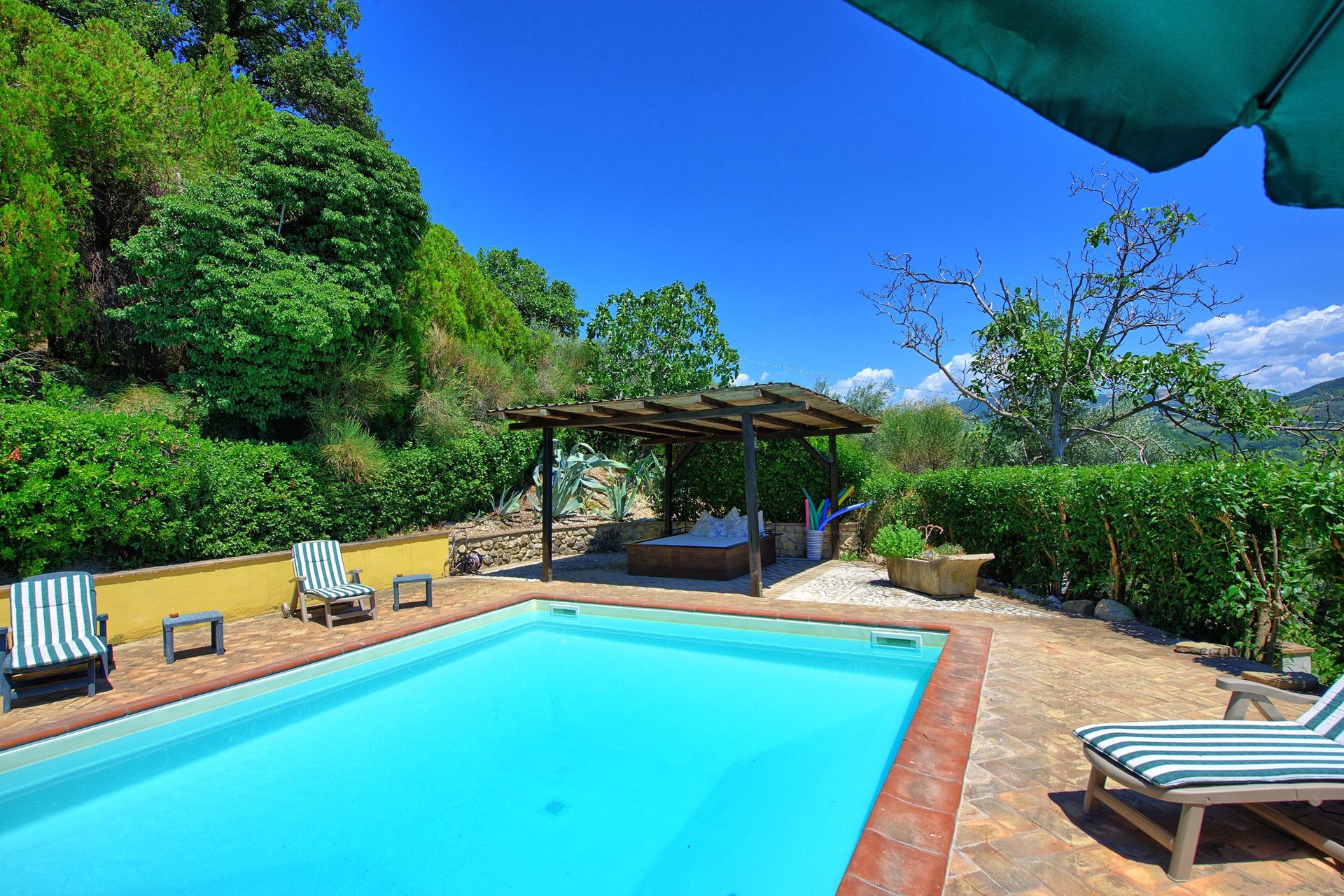Antieke villa uit de 19de eeuw, zorgvuldig en smaakvol gerestaureerd en omgevormd tot een comfortabel en gezellig landhuis. Het huis is hoog en aangenaam gelegen, omgeven door olijfbomen, en biedt een mooi uitzicht over het omliggende landschap. Om het huis een grote tuin (deels in de schaduw) op natuurlijke terrassen, een mooi zwembad en leuke “hoekjes” waar men buiten kan eten. Het huis beschikt verder over een overdekt terras dat ingericht is als woonkamer in de open lucht voor de zomermaanden. De inrichting is comfortabel in landelijke stijl.
