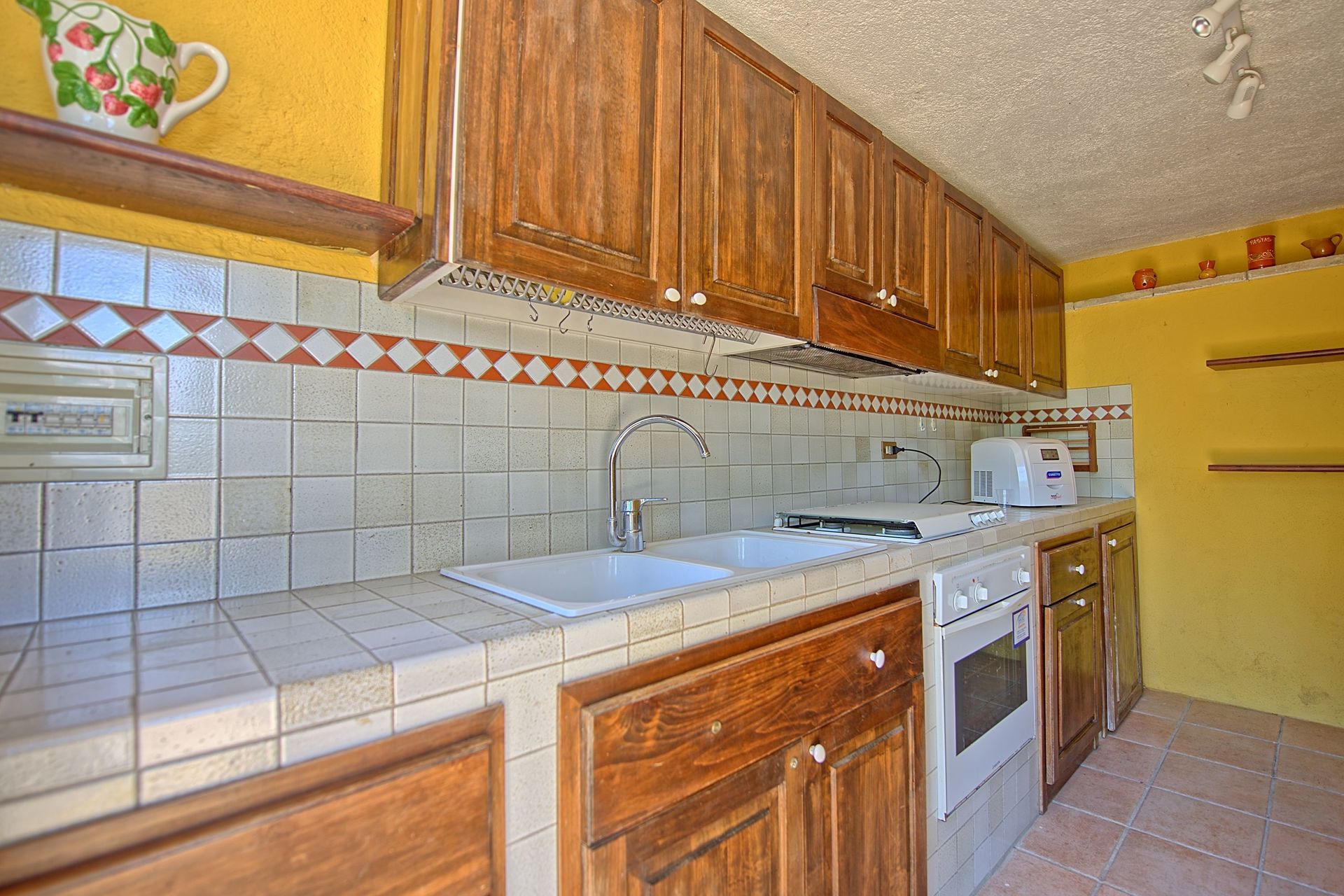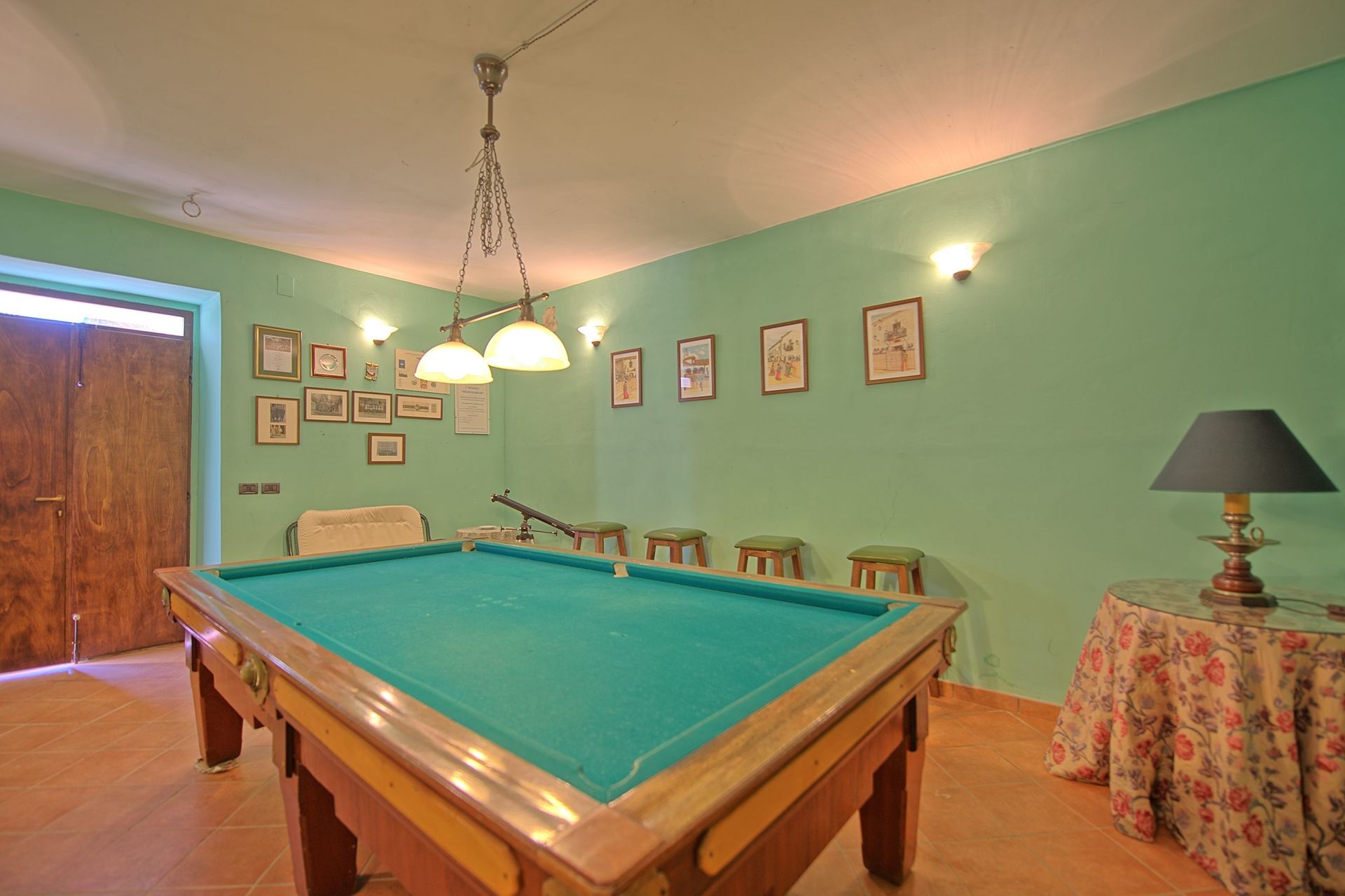 Onderste B.G. (alle kamers zijn alleen vanaf buiten toegankelijk): keuken (oven, vaatwasser, ijskast 140 lt), wasruimte (wasmachine), biljartzaal.