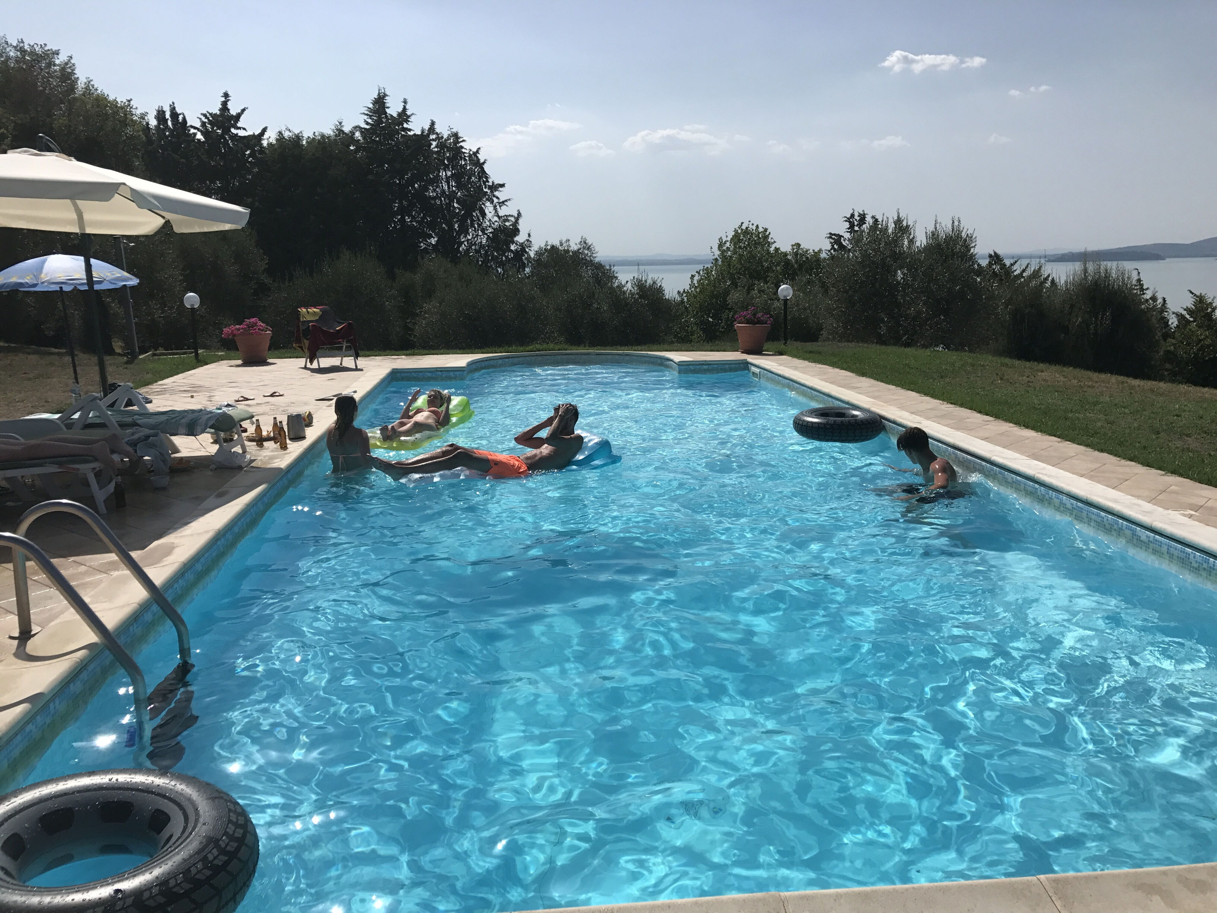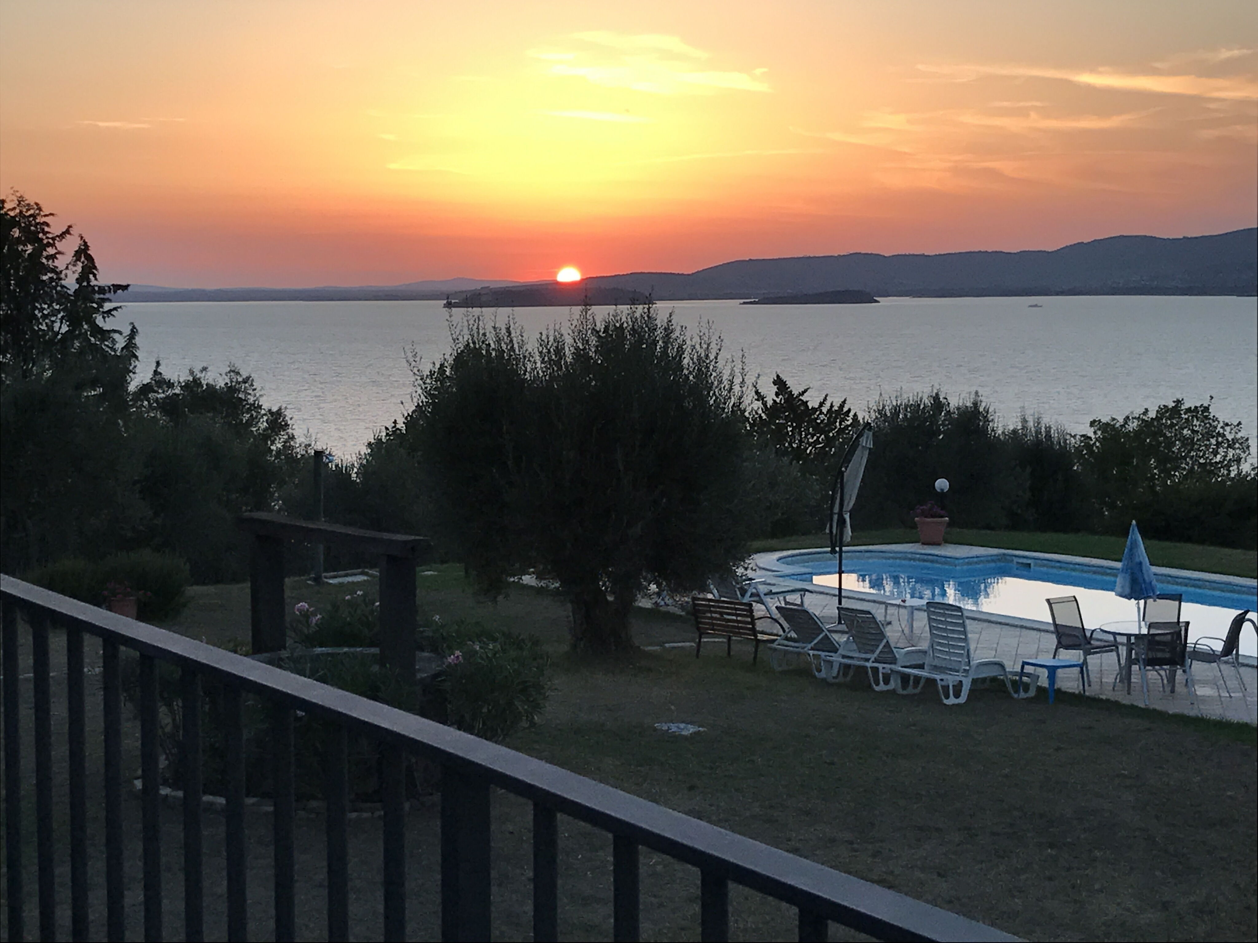 Monte del Lago is an old farmhouse in an extremely panoramic position, on the top of a hill covered with olive trees and overlooking Lake Trasimeno. The villa with its two sun terraces, the private swimming pool (size 5x12 m, depth 1,20-2,00 m - open from 01st May to 30th September) and the garden overlook the shores of the lake, and will give you a dream view every day...with silver waters, small and sleepy villages in the distance and boats gently cruising on the surface of the lake.