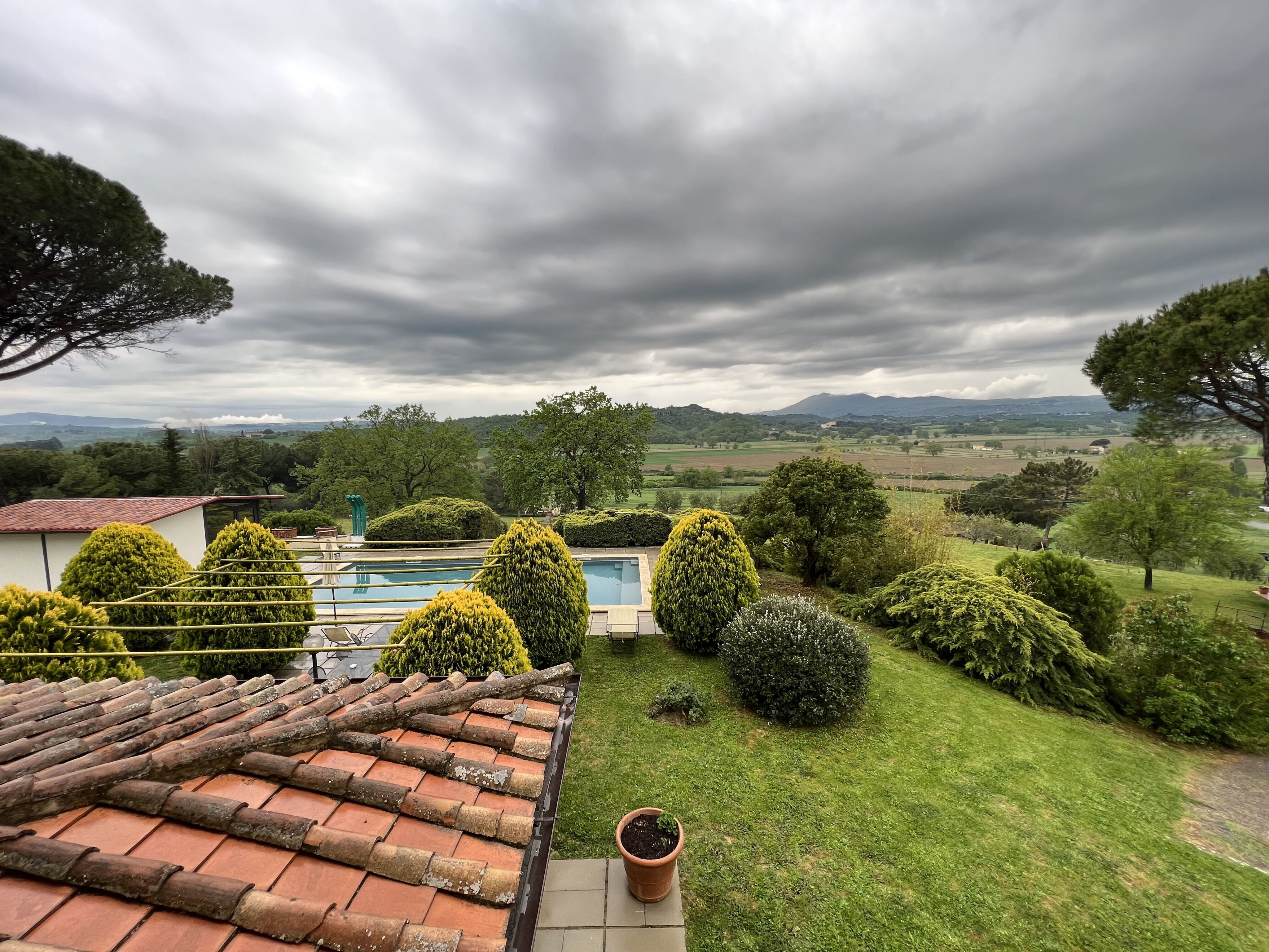 Villa Poggio Falcone is immersed in a vast, completely fenced, park of centuries-old trees, where your dogs can run freely. At the bottom of the valley is the railway line that connects Chiusi with central Italy. The well-kept furnishings, good interior finishes, air conditioning and a well-equipped kitchen guarantee a pleasant and relaxing holiday. Nicola the owner will give you a warm welcome and will delight you with breakfasts, lunches or dinners, which you can enjoy directly at home or in the “ristoro” situated at the edge of the garden.
