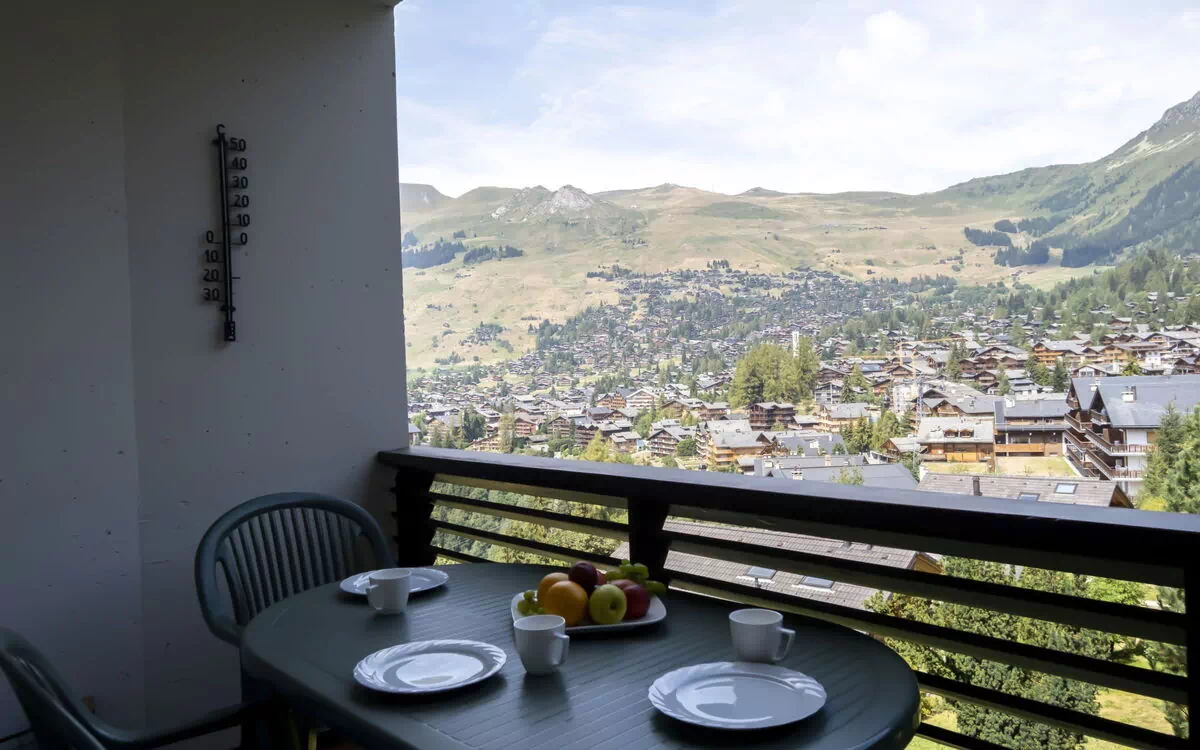 Het vakantieappartement "Les Girolles A59" heeft een oppervlakte van 90 m² en is gelegen op de tweede verdieping. Het biedt plaats aan maximaal 4 gasten en beschikt over 2 slaapkamers en 1 badkamer. De eerste slaapkamer is ingericht met een tweepersoonsbed bestaande uit 2 eenpersoonsmatrassen van elk 90 cm breed en 190 cm lang. De tweede slaapkamer is voorzien van een Frans bed van 160 cm breed en 200 cm lang, en beschikt over een wastafel. De ruime woon- en eetkamer is licht en elegant ingericht en geeft direct toegang tot een balkon op het zuiden en oosten met uitzicht op de bergen en het resort. De badkamer is uitgerust met een bad, douche en toilet; daarnaast is een apart toilet beschikbaar. De open keuken is volledig uitgerust en ruim van opzet. Het appartement beschikt over 2 kleine balkonnen van elk 8 m², één op het oosten en één op het westen, beide voorzien van balkonmeubilair.