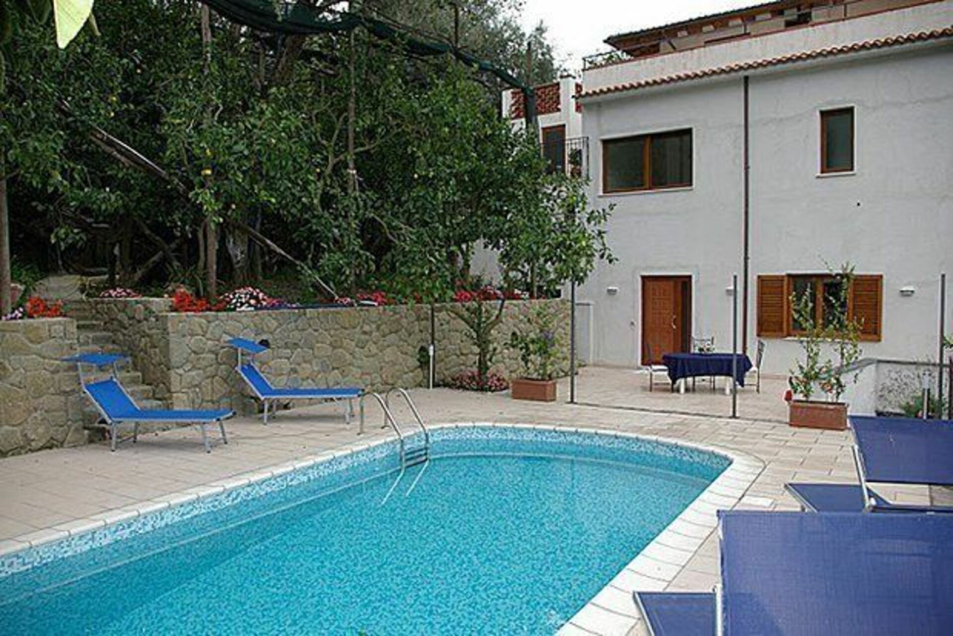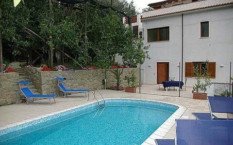 Nice recently-built house comprising three welcoming apartments all of which with private entrance, situated in quiet and dominating location amidst olive and lemon groves. This property offers beautiful panoramic views over the Gulf of Naples and over the island of Capri. The outside areas provide a nice terraced garden with a pool and solarium area. All of the 3 units are furnished in a rustic style.