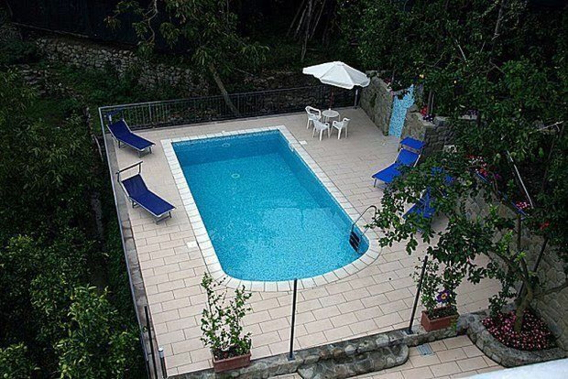 At guests’ disposal: swimming-pool (4x 8 m – depth from 1,4 to 2,2 m – open from 25/05 to 28/09) with solarium and open-air shower (cold water only), furnished terrace (30 square meters). Shared laundry with ironing facilities. All of the apartments provide a private equipped terrace, internet access Wi-Fi (free of charge) and satellite TV.