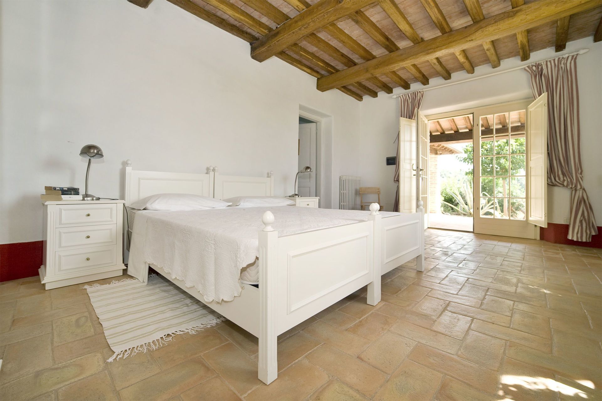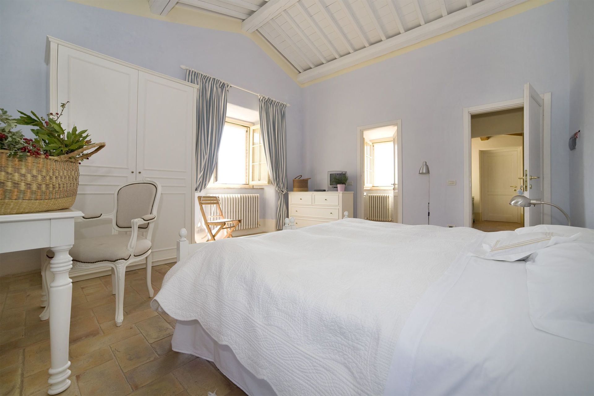 Slaapkamer met badkamer 2: tweepersoonsbed, WIFI internet, hor, wastafel, toilet , bidet, bad, haardroger, uitgang naar de tuin.