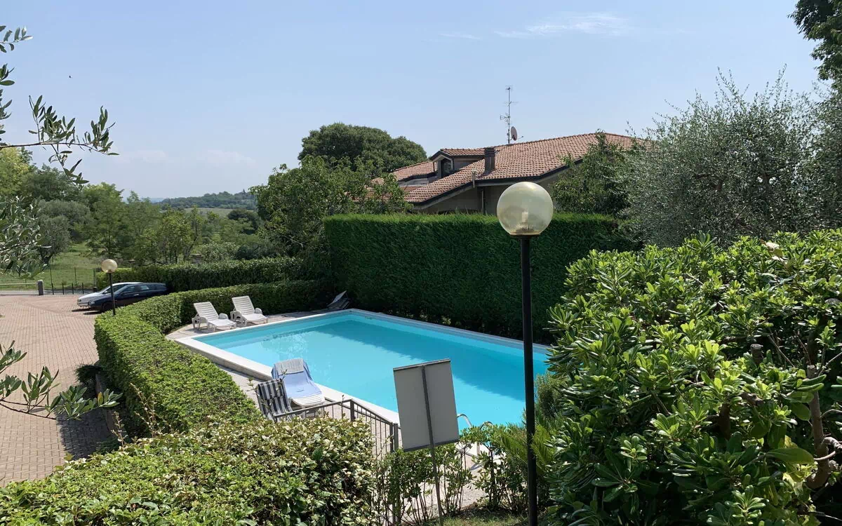 Residentie "Oliveto", van 2 verdiepingen. Boven Peschiera del Garda, 2.5 km van het centrum van Pozzolengo, 6 km van het centrum van Peschiera del Garda, rustige, zonnige, verhoogde ligging tegen een helling, 7 km van het meer. Voor medegebruik: openluchtzwembad (15 x 5 m, seizoensgebonden beschikbaarheid: 01.Jun.-30.Sep. openingstijden zwembad: 08:30-12:30 en 15:00-20:00). Buitendouche. 60 m lange toegangsweg (onverharde weg). Trappenweg naar het huis. Parkeerplaats op 40 m op het terrein. Levensmiddelenwinkel 2.5 km, restaurant 2.5 km, station "Peschiera del Garda" 7 km, veerboot "Peschiera del Garda" 7 km, grasstrand "Liviana" 6 km, park "Parco Giardino Sigurtà" 12 km, thermaalbad "Aquaria Sirmione" 14 km. Golfterrein 6 km, tennis 2 km. Attracties in de buurt: Sirmione 14 km, Castellaro Lagusello 7 km, Borghetto sul Mincio 13 km, Mantova 38 km, Verona 40 km, Parco acquatico Cavour 13 km. Let op: auto noodzakelijk. De eigenaar accepteert geen jeugdgroepen. De eigenaar woont op hetzelfde terrein. De eigenaar heeft een hond.