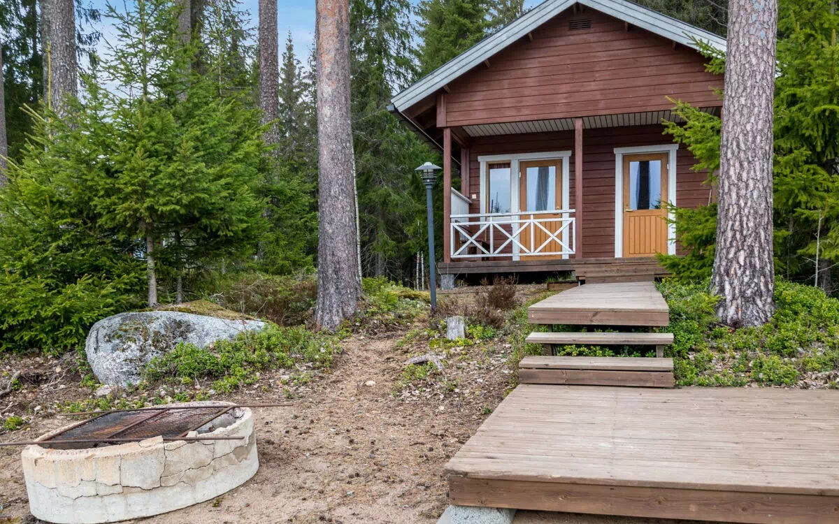 There is an air source heat pump with cooling and warming functionality on the cabin. Comfortable log cottage on shore of peaceful forest lake. Plot also has separate lakeshore sauna and car port. Suitable for larger families or e.g. two couples. Yard area is level and light.