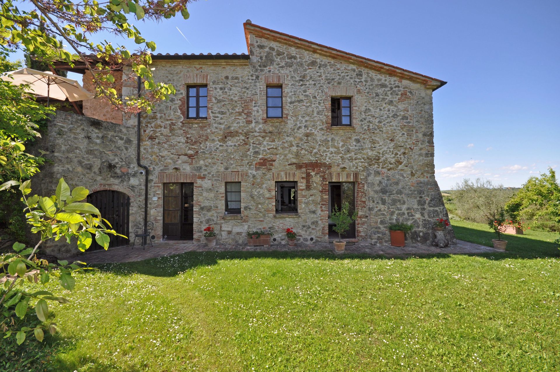 B.G.: woon/eetkamer met keukenhoek (oven, vaatwasser, barbecue), 3 slaapkamers met tweepersoonsbed, slaapkamer met eenpersoonsbed, 2 badkamers met douche.