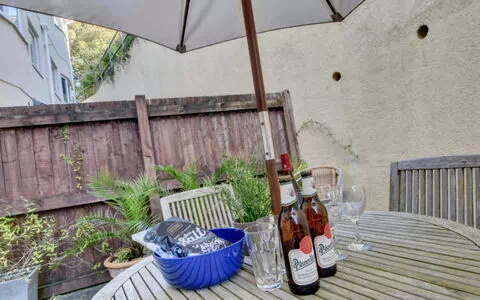 "Rockham", appartement 3-kamers op de begane grond. Comfortabel en mooi ingericht: woon-/eetkamer met Digitale TV, Flatscreen TV, radio en DVD. Uitgang naar de zitplaats in de tuin. 1 kamer met 1 2-pers bed en douche/WC. 1 kamer met 2 bedden. Open keuken (4-pits kookplaat, oven, afwasmachine, magnetron) met stereo-installatie. Bad/douche/WC. Gas-verwarming. Zithoek in de tuin. Terrasmeubelen, barbecue. Ter beschikking: wasmachine, droger, kinderstoel, kinderbed tot 2 jaar. Parkeerplaats bij het huis. Rookvrij huis. Playstation II.