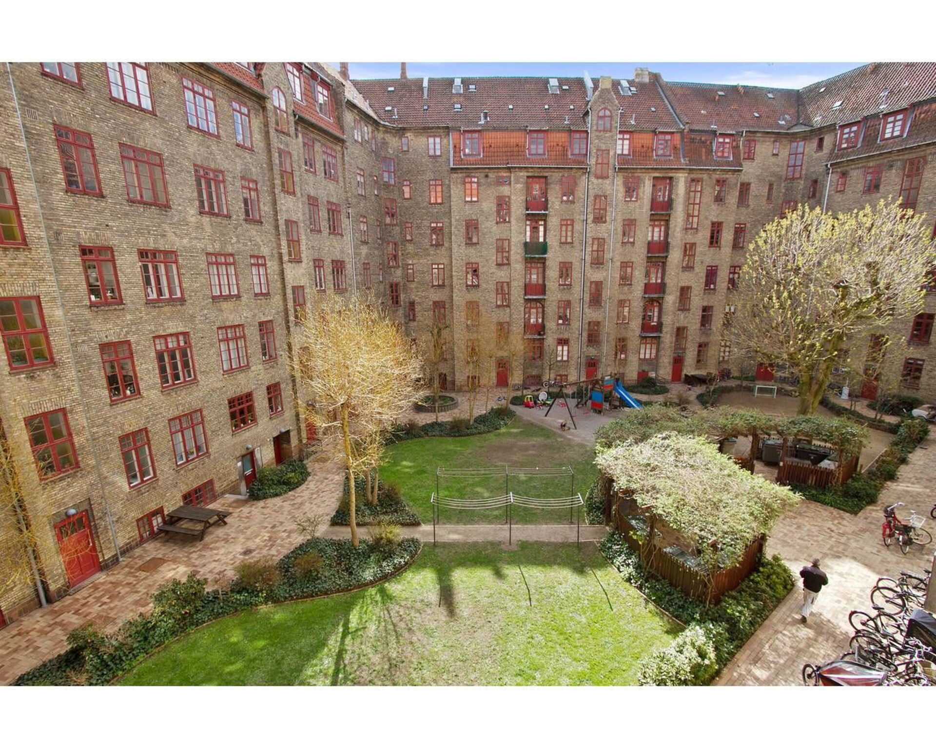 A real gem of an apartment with plenty of space. There is 163 m2 to romp in, and the apartment will be perfect for the whole family. Room for 4 adults and 2 children. Lovely courtyard with playground, picnic tables and benches.