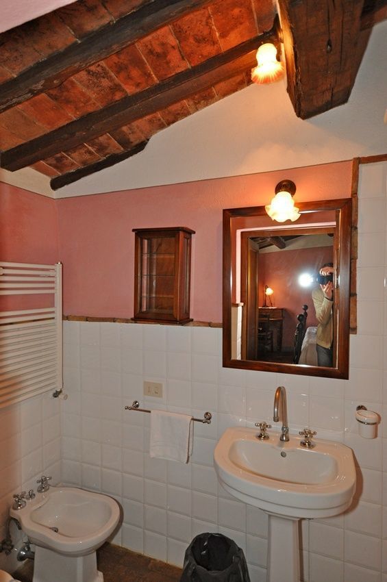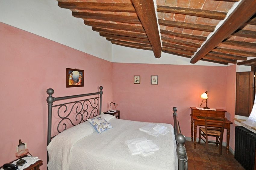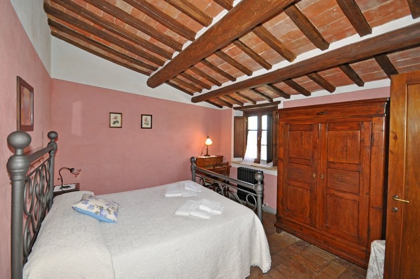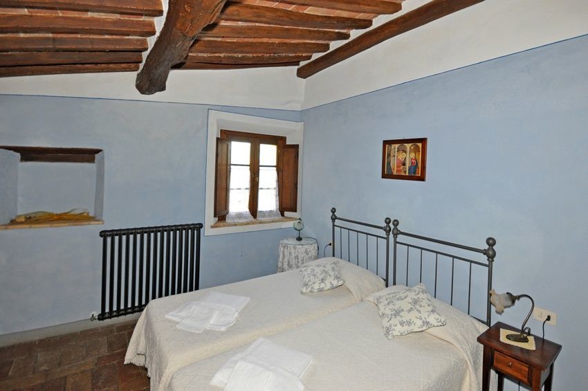 1 trede lager: slaapkamer met 2 eenpersoonsbedden met eigen badkamer met douche.