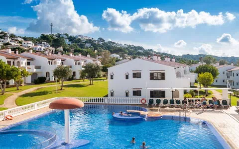 Kindvriendelijk, gezellig, rustieke vakantie complex "Son Bou Gardens Apt 3 dorm", omgeven door bomen.