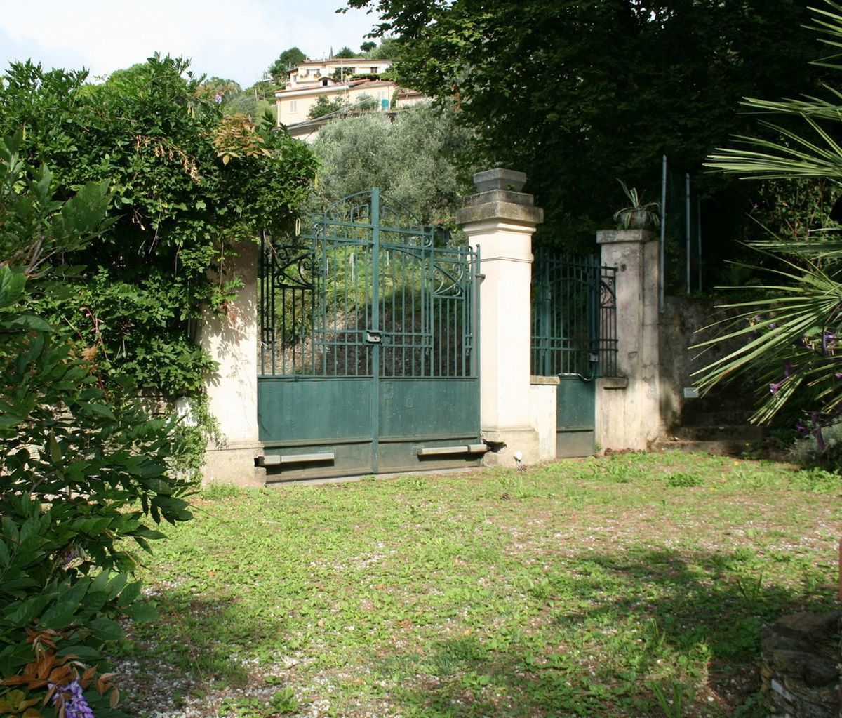 - The part of the garden at the same level with Villa Stefano with parking for 2 cars with automatic gate entrance, small lawn with seating for dining, barbecue and access to the kitchen.