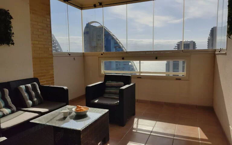 "Islamar III", appartement 3-kamers 119 m2 op de 19e verdieping. Ruim en licht, doelmatig ingericht: woon-/eetkamer 15 m2 met Digitale TV, air-conditioning en heteluchtverwarming. Uitgang naar het terras. 1 kamer 7 m2 met 2 bedden (90 cm, lengte 190 cm), douche/WC, Digitale TV, air-conditioning en heteluchtverwarming. 1 kamer 9 m2 met 1 2-pers bed (150 cm, lengte 190 cm), douche/WC, Digitale TV, air-conditioning en heteluchtverwarming. Keuken 5 m2 (oven, afwasmachine, 4 keramische glas kookplaten, waterkoker, magnetron, diepvriezer, elektrische koffiemachine). Groot terras 12 m2. Terrasmeubelen. Zeer mooi uitzicht op zee. Ter beschikking: wasmachine, droger, strijkijzer. Internet (Internet (WiFi), gratis). VT-323749-BM
