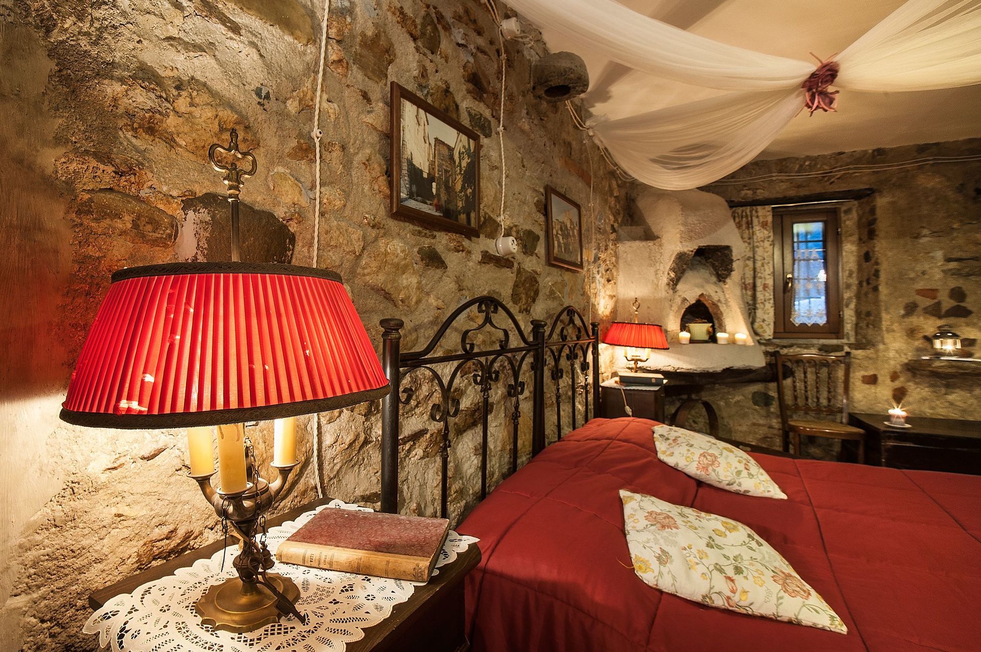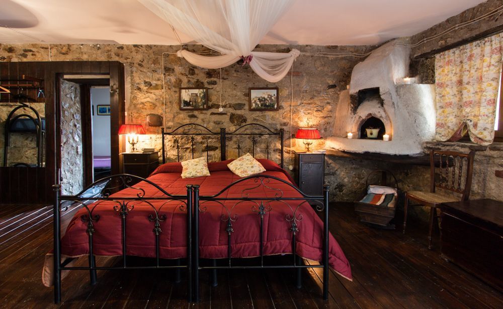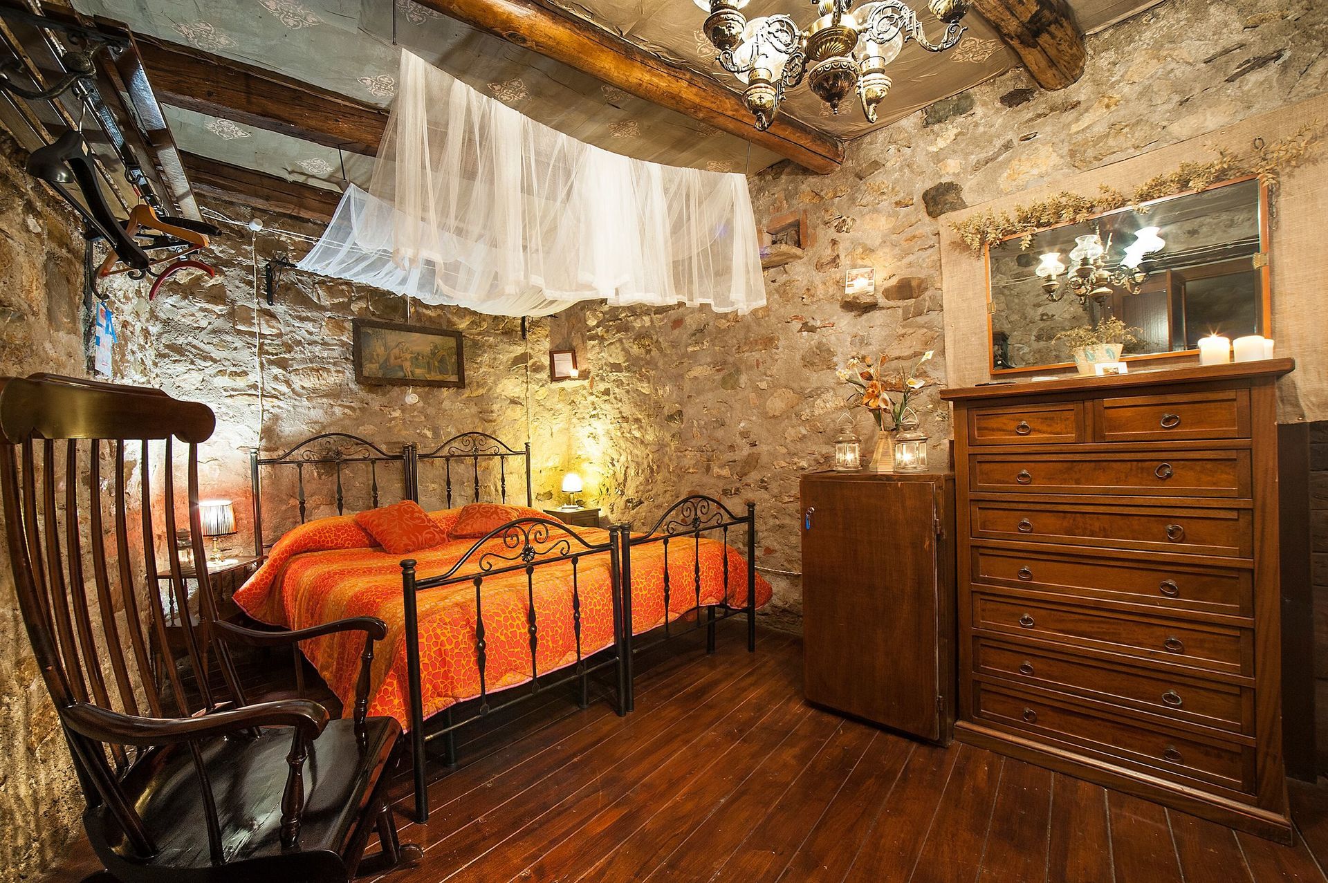 Ground floor: bedroom with double bed + bunkbed and en-suite bathroom with shower, bedroom with double bed + single bed and en-suite bathroom with shower as well as kitchen corner (2 induction plates, microwave, toaster, kettle). One of the rooms opens straight onto a panoramic terrace furnished with table and wrought iron chairs. The other room gives direct access to a balcony providing unobstructed views over the valley, the town and the river (with its pleasant sound pampering the guests day and night).