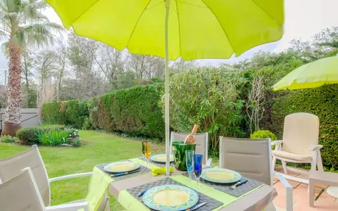 Studio 1-kamer 36 m2, op de begane grond, op het zuidwesten gelegen. Het objekt is geschikt voor 2 volwassenen + 2 kinderen. Mooi ingericht: woon-/eetkamer met 1 2-pers divanbed (140 cm, lengte 190 cm), 1 2-pers bed (140 cm, lengte 190 cm), TV en internationale TV-zenders (Flatscreen TV). Uitgang naar het terras. Kookhoek (3-pits kookplaat, oven, diepvriezer, elektrische koffiemachine, pads voor de koffiemachine (Nespresso) extra). Douche, aparte WC. Air-conditioning, heteluchtverwarming. Terras 15 m2, tuin 200 m2. Terrasmeubelen, barbecue, ligstoelen (2). Mooi uitzicht op de tuin. Ter beschikking: kluis. Internet (Internet (WiFi), gratis). 1 klein huisdier/hond toegestaan. Rookmelders. 83065000002FU
